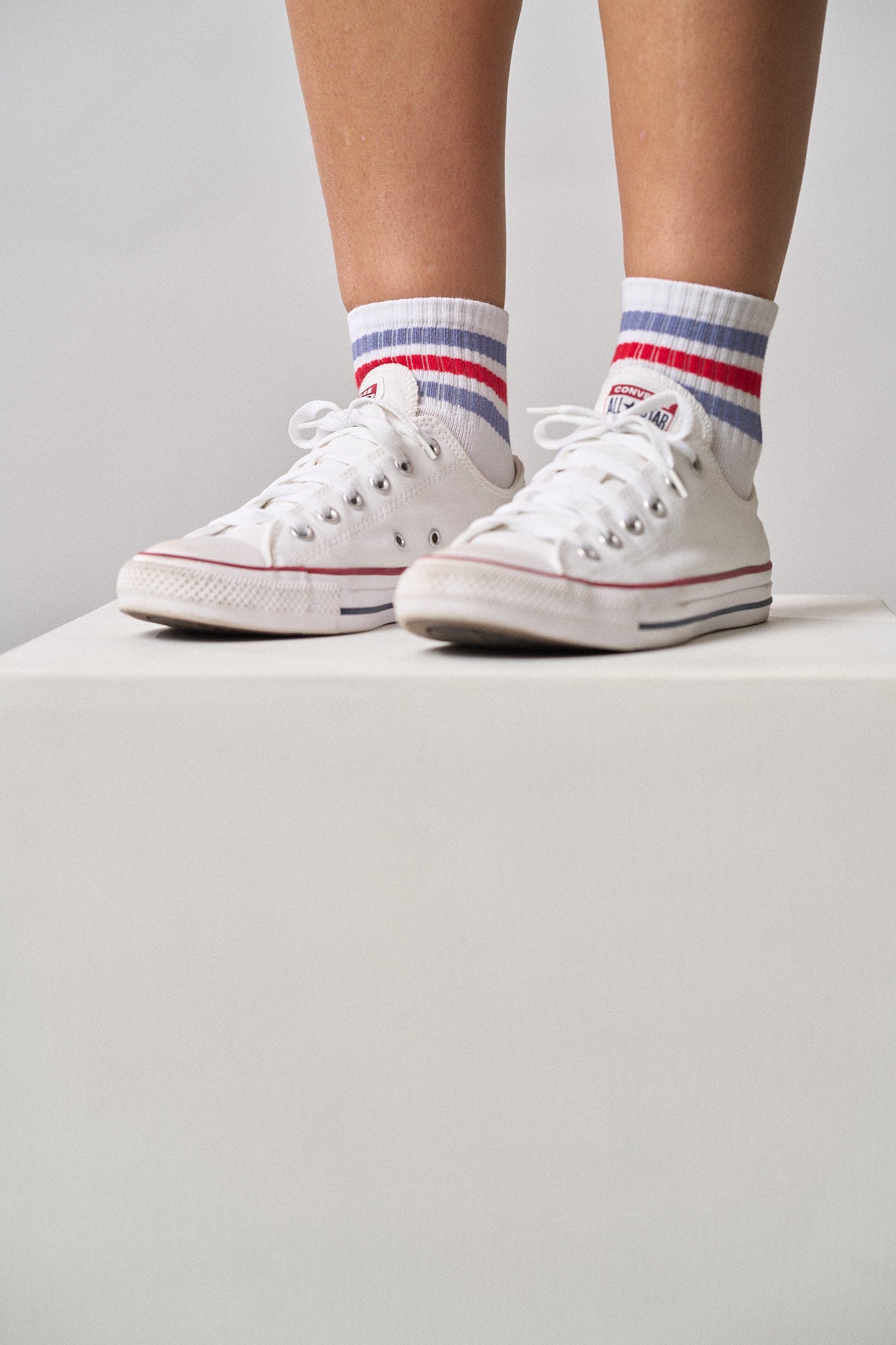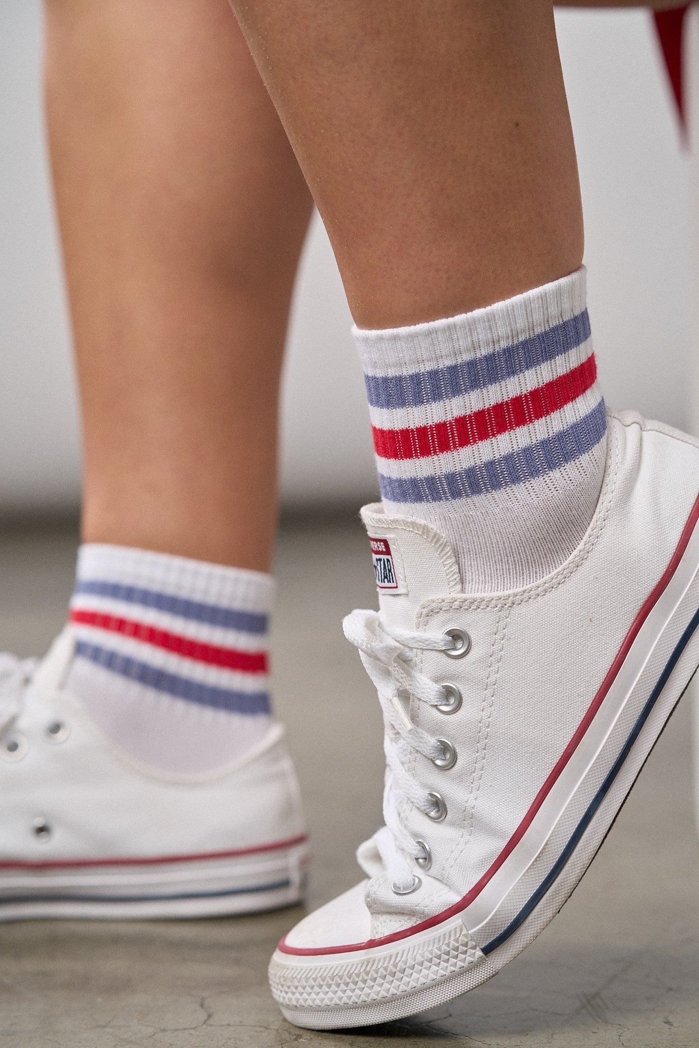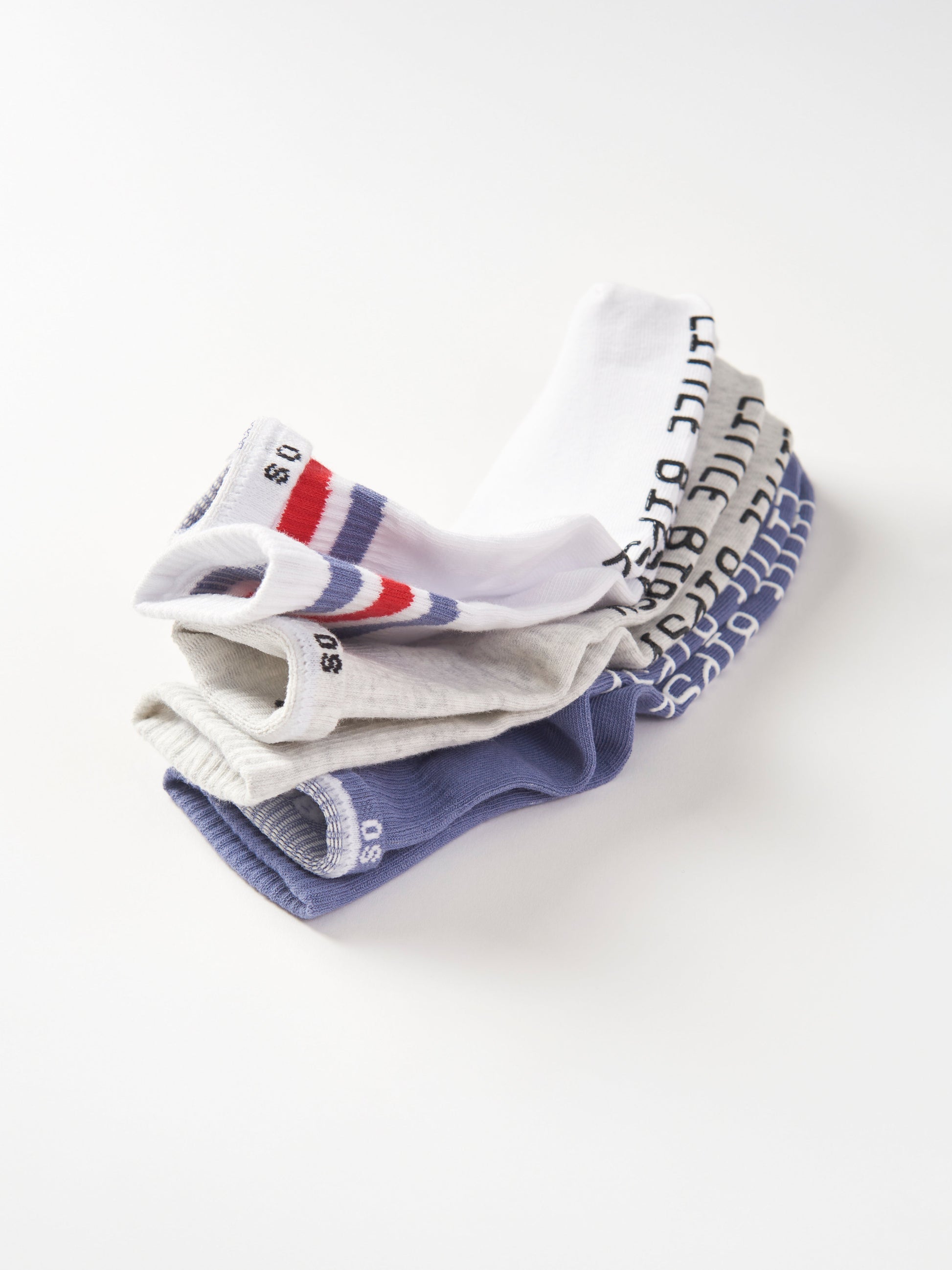 Step up your outfit with this 3-pack of USA-themed socks! In navy, grey, and white with bold red and blue stripes, these socks are perfect for all patriots. A must-have for showing off some USA pride from head to toe!