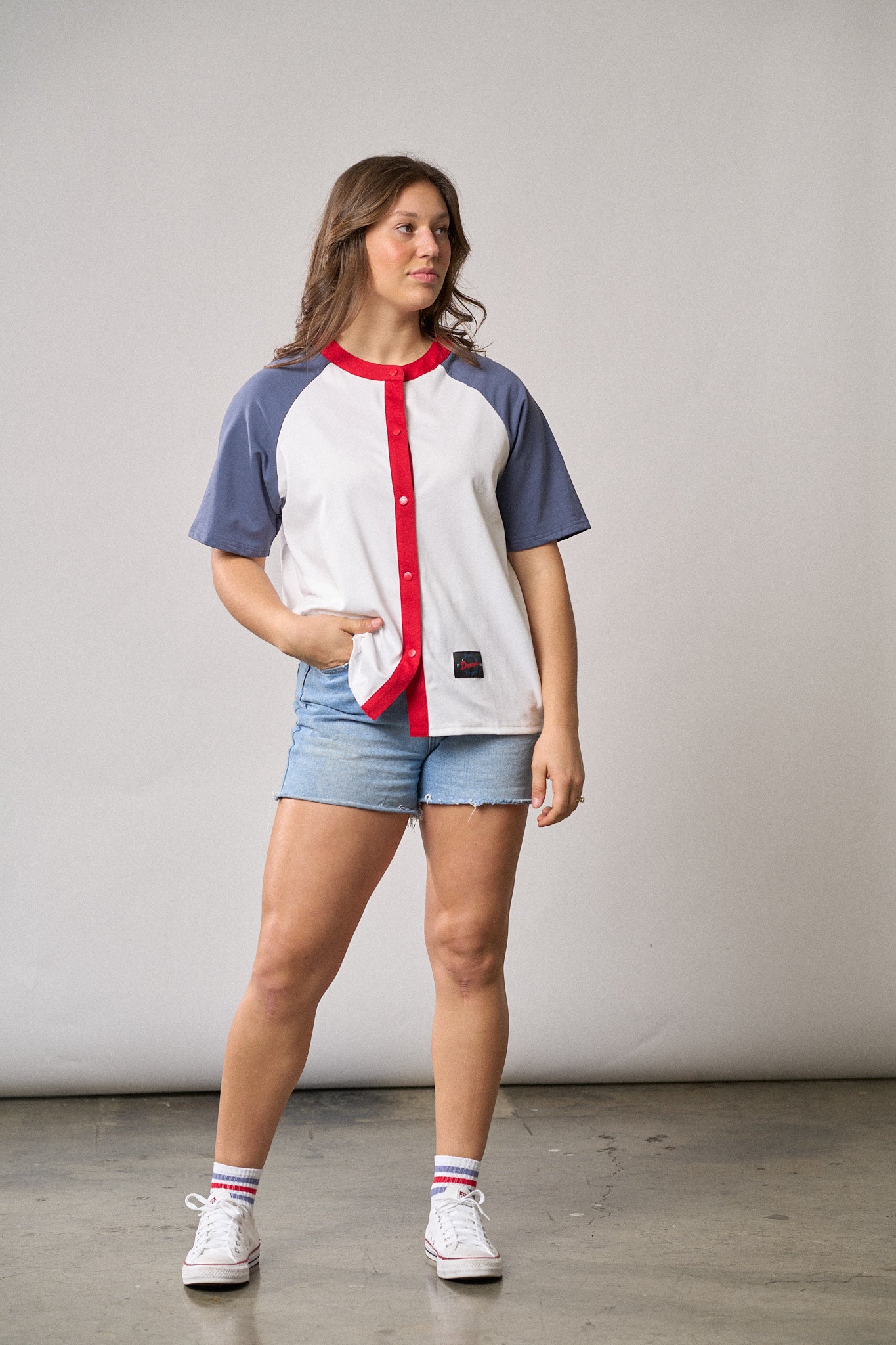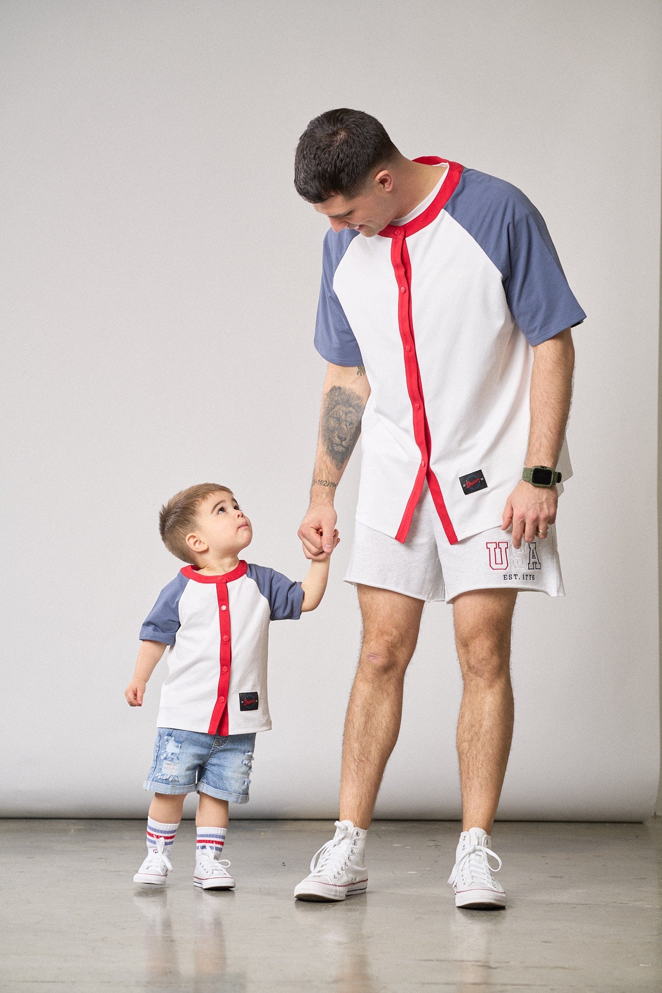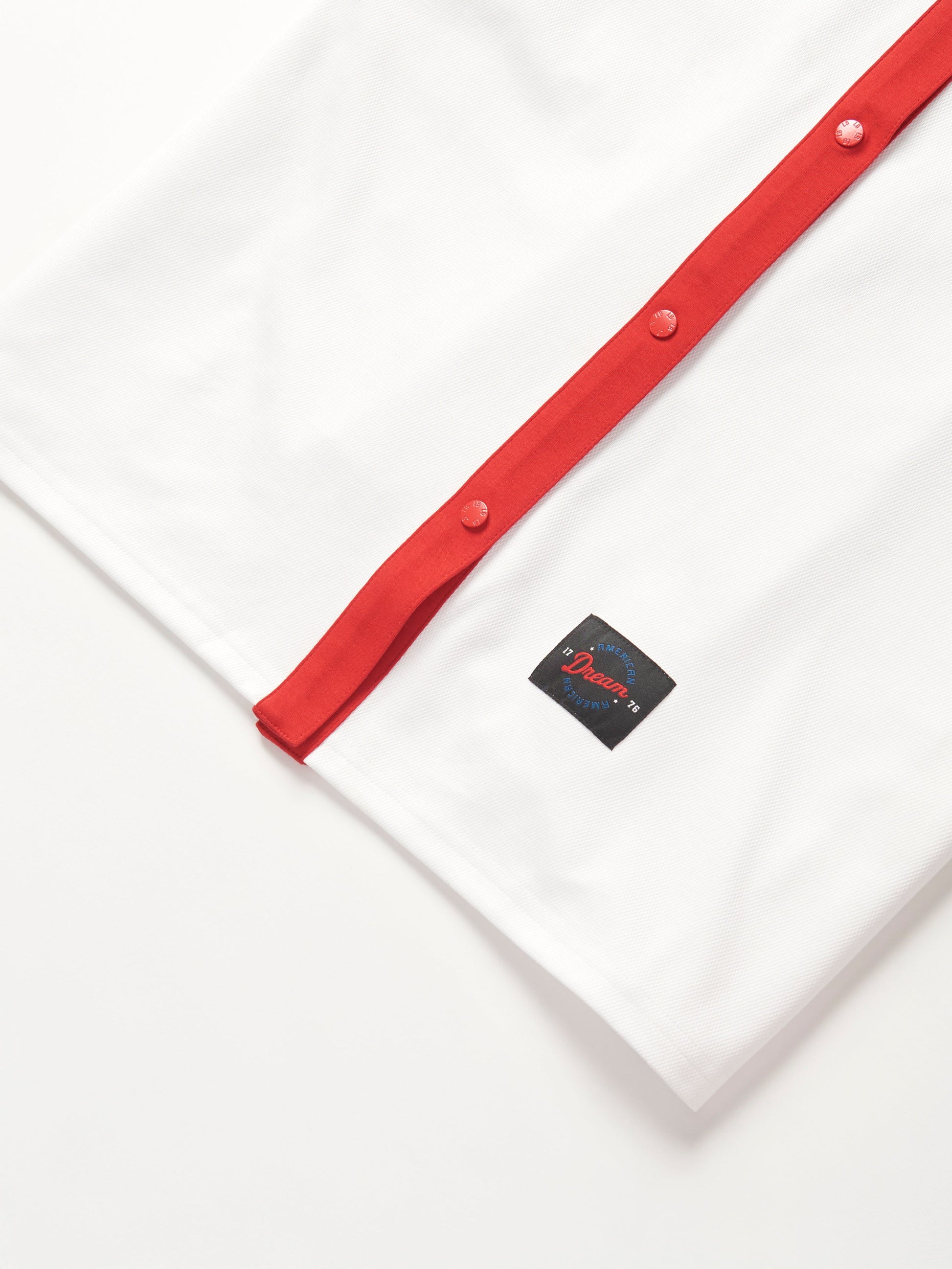 Rep the USA in style! This white jersey with red and blue accents features an embroidered "USA" on the back and a cool “American Dream” tag. This jersey is a perfect piece to elevate your outfit for any celebration or a day at the fields.