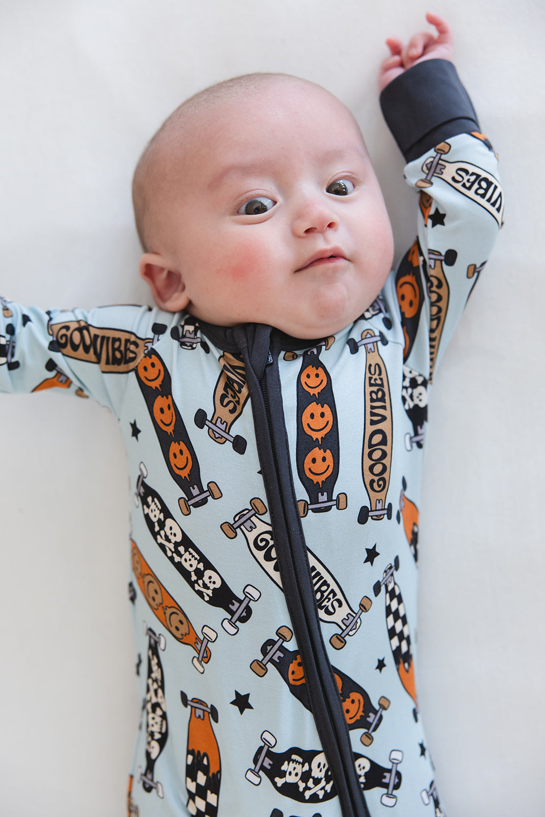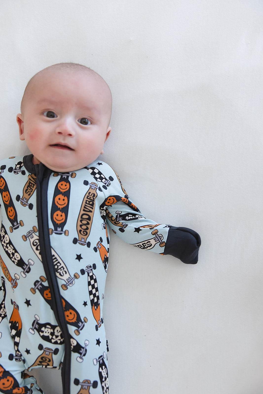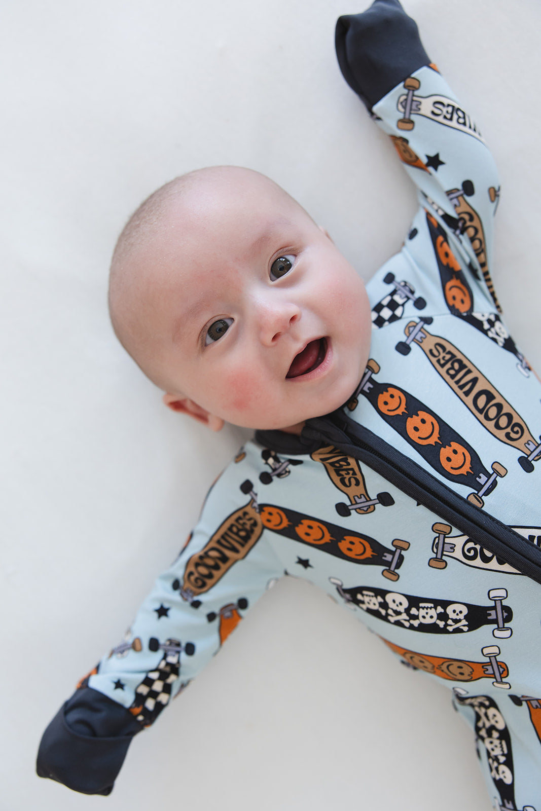 With fold-over wrist and ankle cuffs for added comfort and a double zipper for effortless diaper changes, our zippies are a game-changer for busy parents. The tagless design guarantees irritation-free wear, making them ideal for all-day lounging and play.