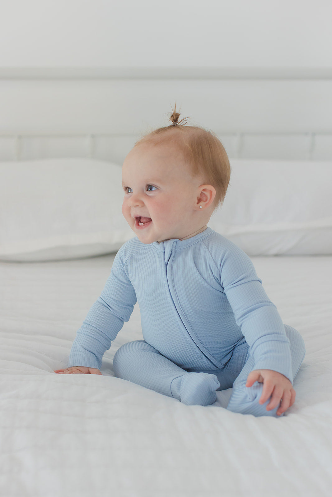 With fold-over wrist and ankle cuffs for added comfort and a double zipper for effortless diaper changes, our zippies are a game-changer for busy parents. The tagless design guarantees irritation-free wear, making them ideal for all-day lounging and play.