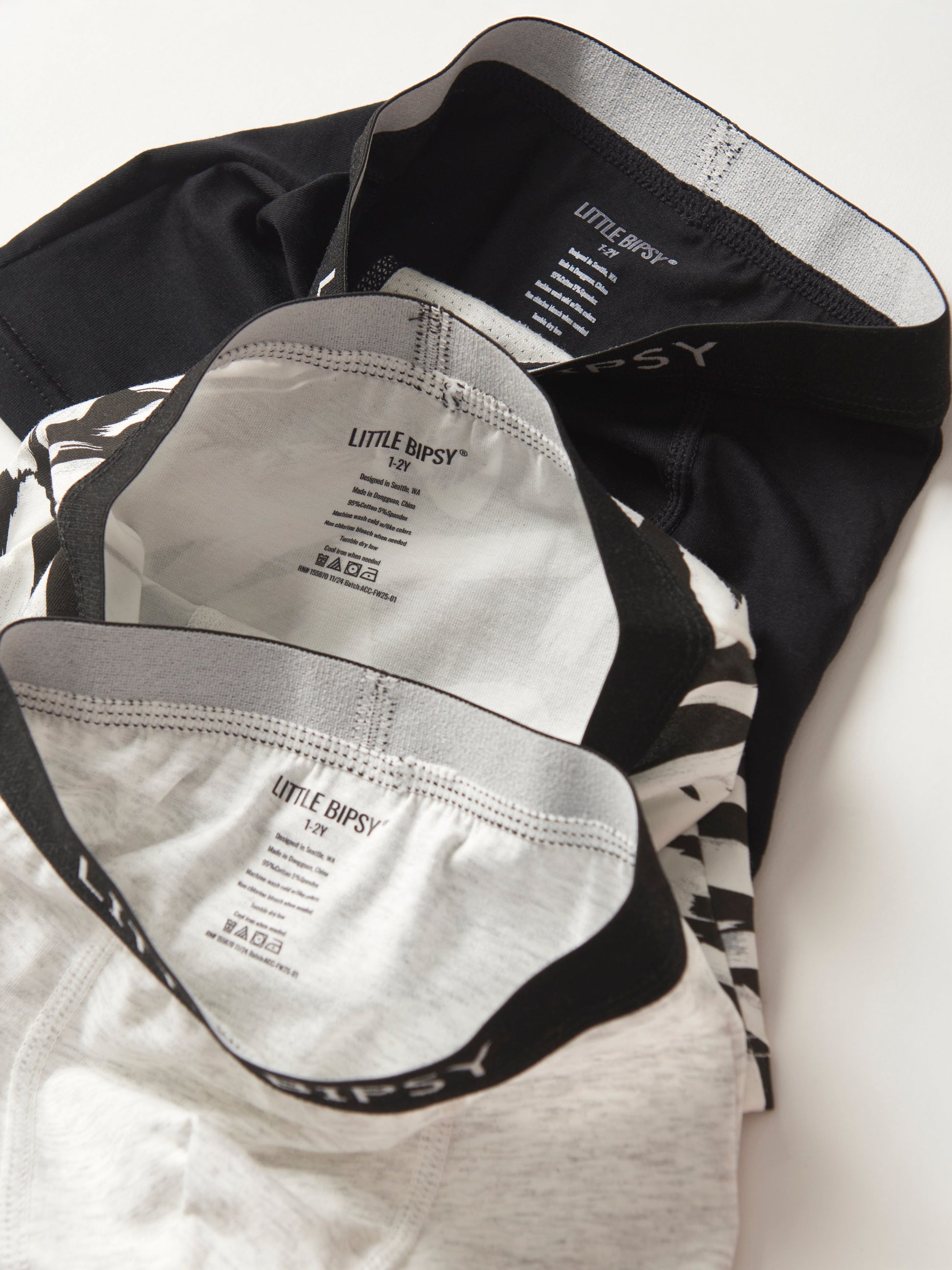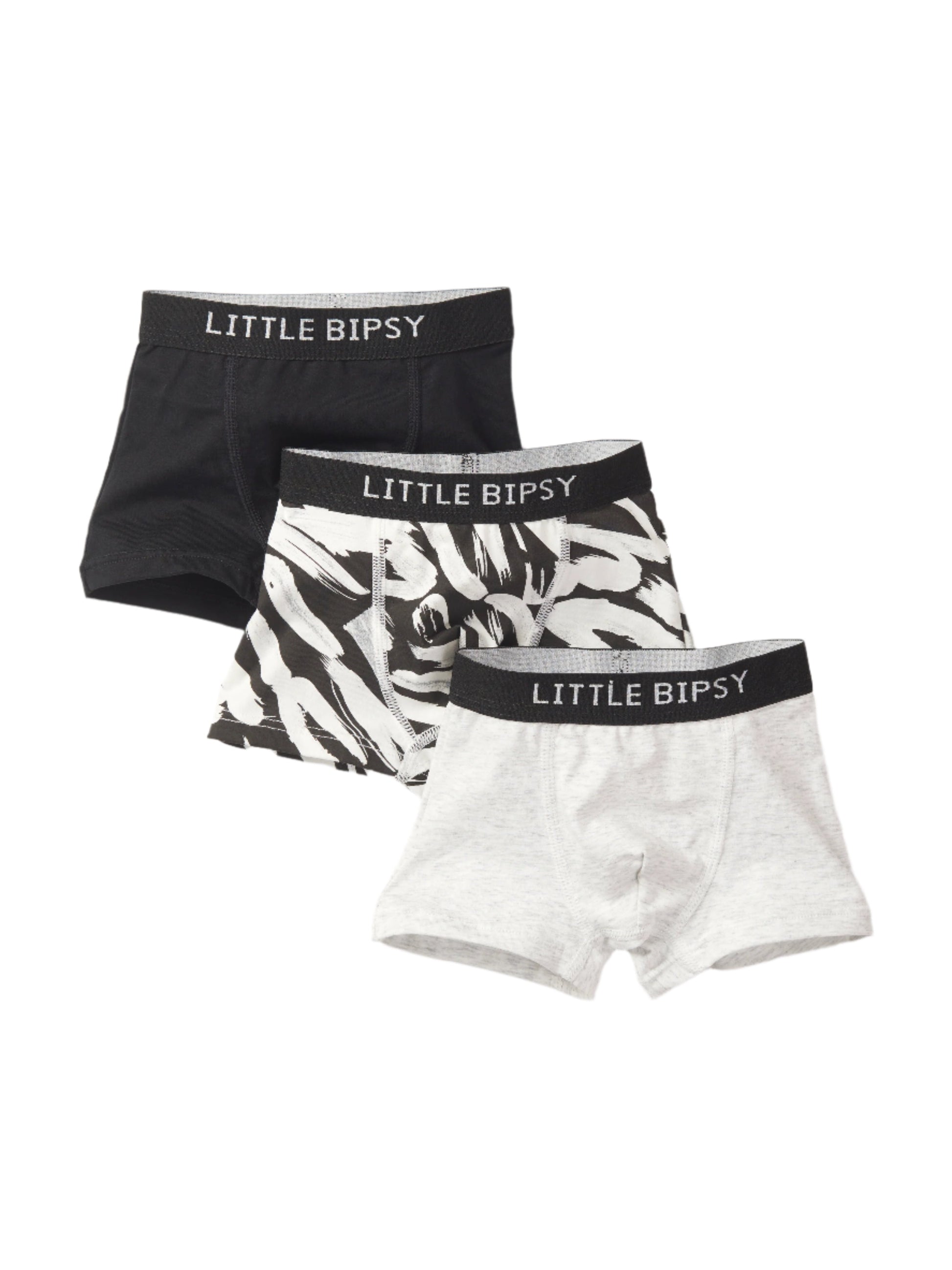 The crowd favorite boys boxer brief pack is back in a stylish Brush Stroke Mix of Black, Grey, and Black Brush Stroke. Designed with both comfort and practicality in mind, these boxer briefs feature a leakproof, absorbent front liner to keep your little one dry and comfortable throughout the day. The elastic waistband, featuring classic "Little Bipsy" branding, ensures a secure and snug fit. Whether for play or relaxation, this pack provides reliable protection and a touch of style. Perfect for active boys on the go, these boxer briefs are a must-have for their everyday essentials.