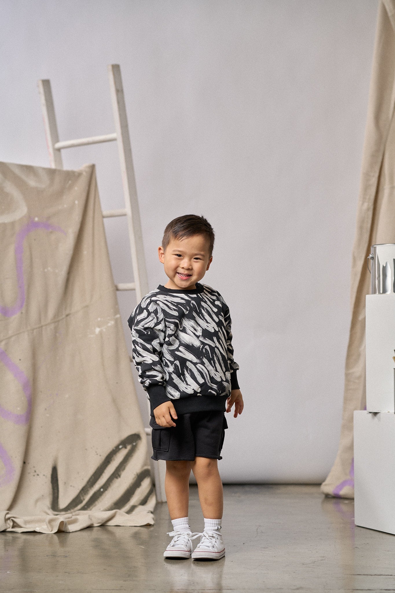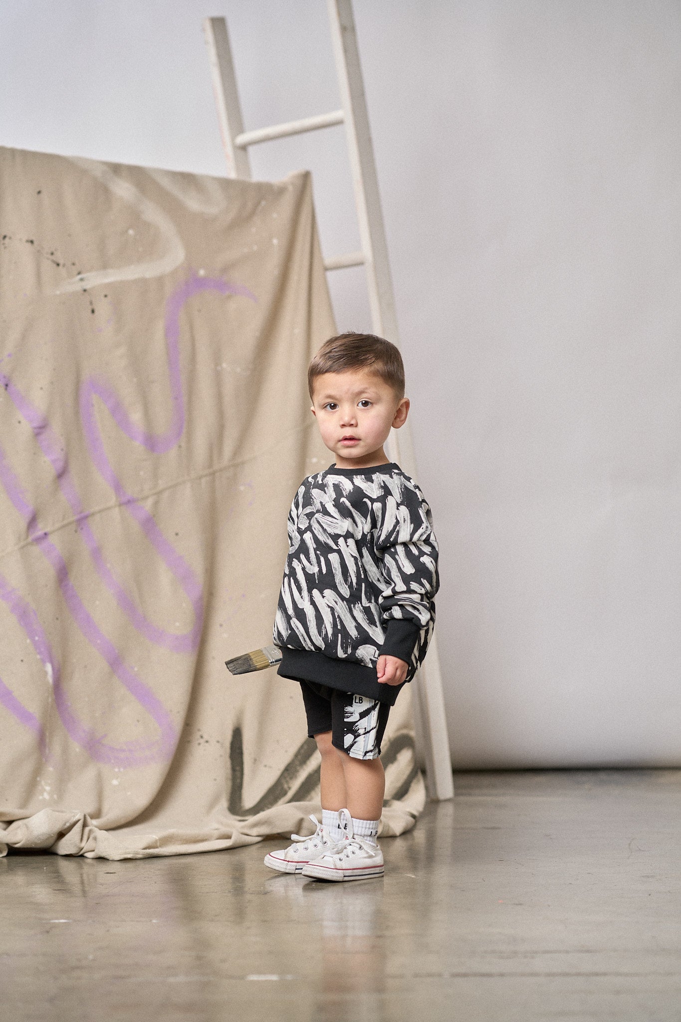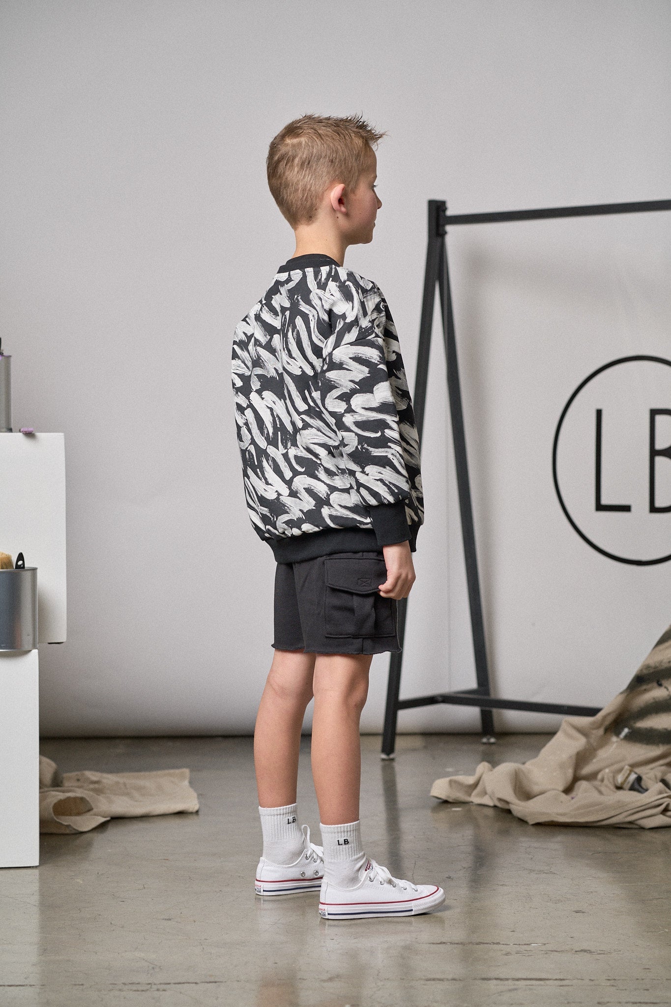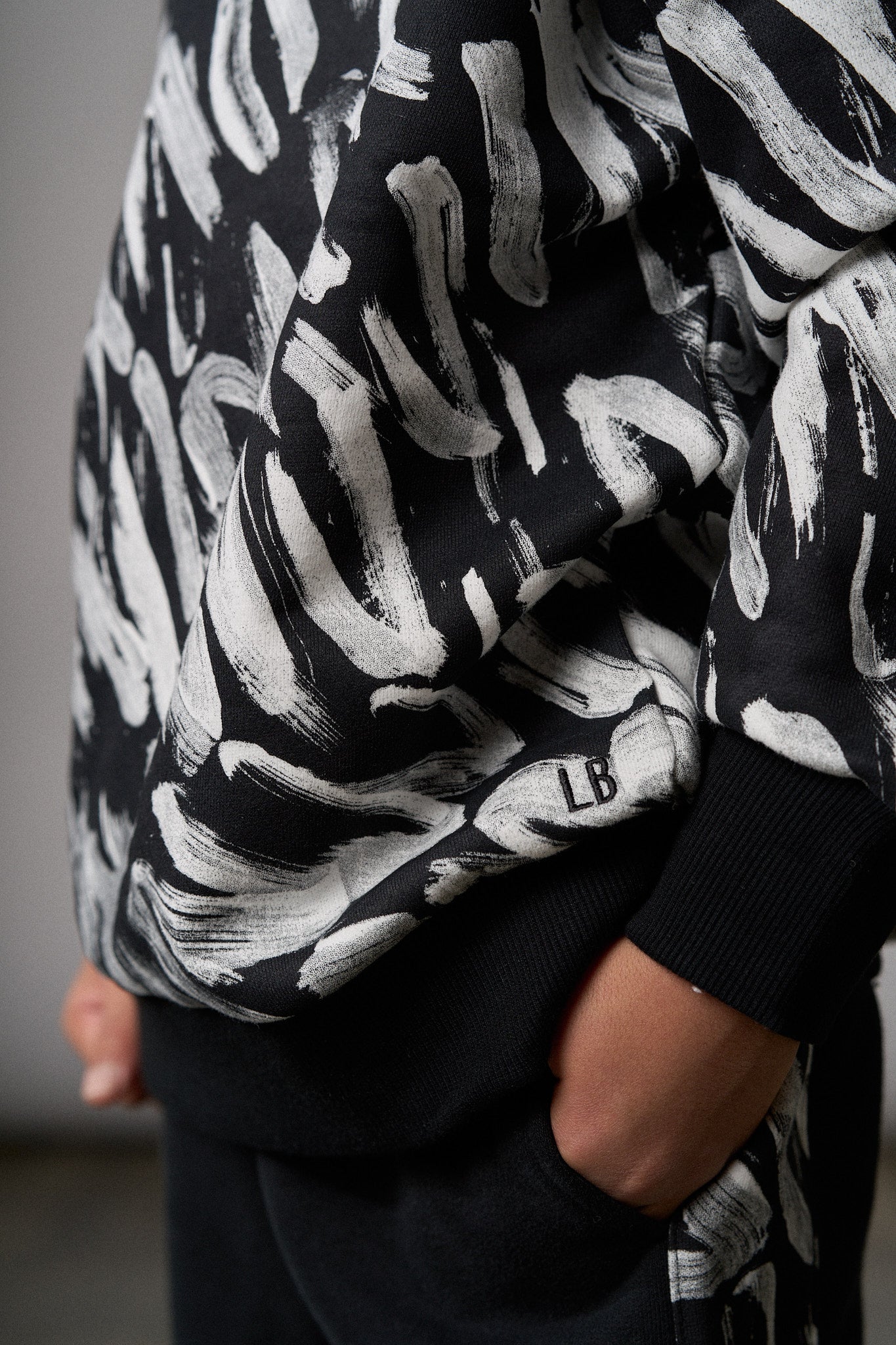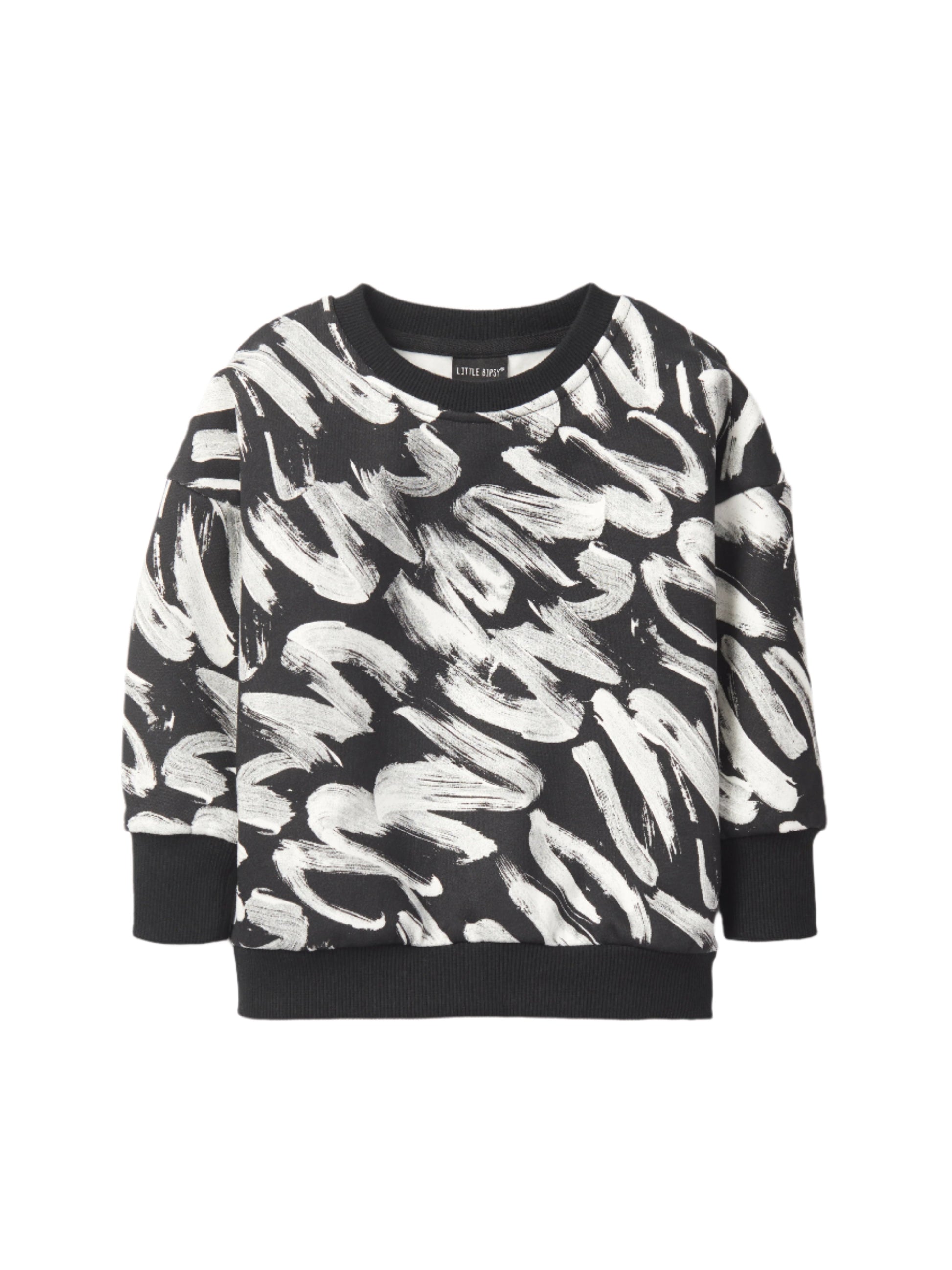 This cozy pullover crewneck is the perfect addition to any child’s wardrobe, offering a playful, artistic flair with its unique paint inspired design. Crafted in a timeless black with a white brush stroke pattern, this pullover also features ribbed wrist cuffs and a bottom hem for a snug, yet flexible fit. The LB signature embroidery adds a touch of elegance, while the sewn-in care label ensures easy maintenance.