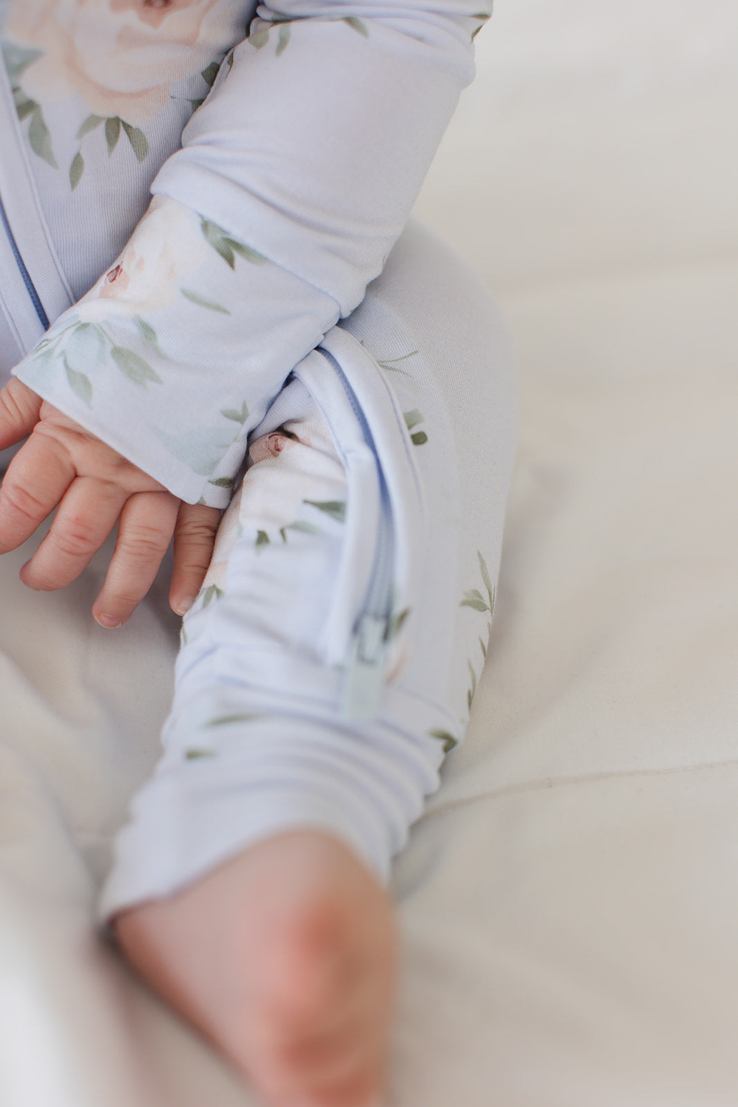 With fold-over wrist and ankle cuffs for added comfort and a double zipper for effortless diaper changes, our zippies are a game-changer for busy parents. The tagless design guarantees irritation-free wear, making them ideal for all-day lounging and play.