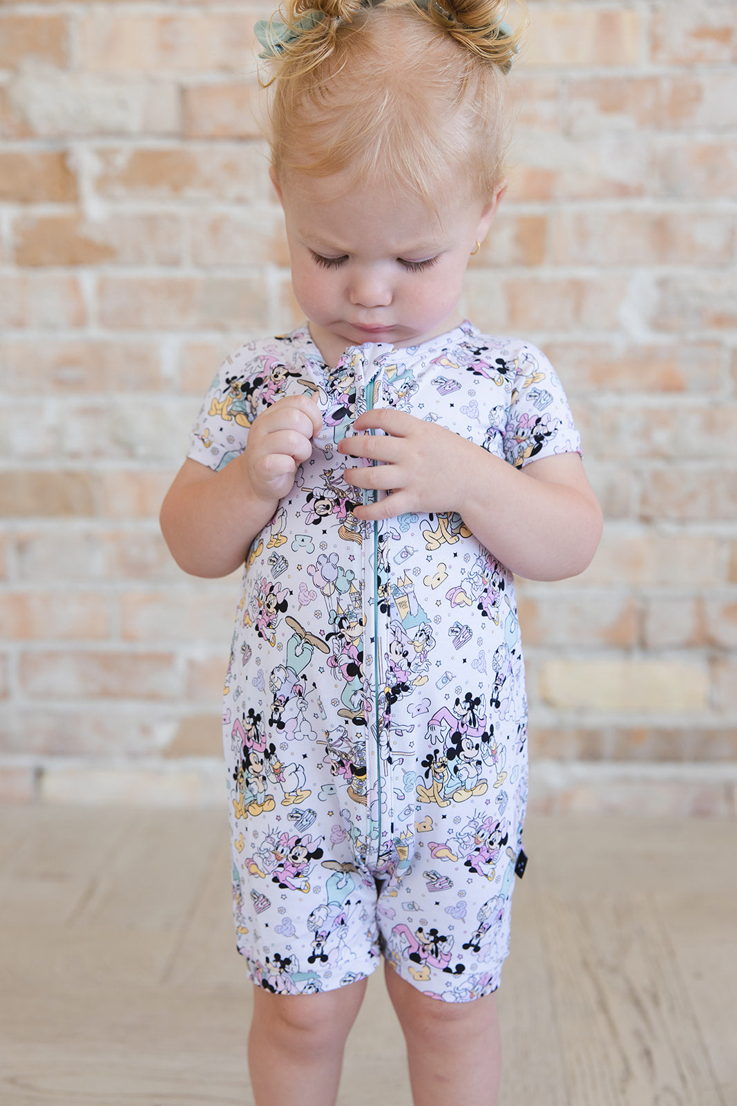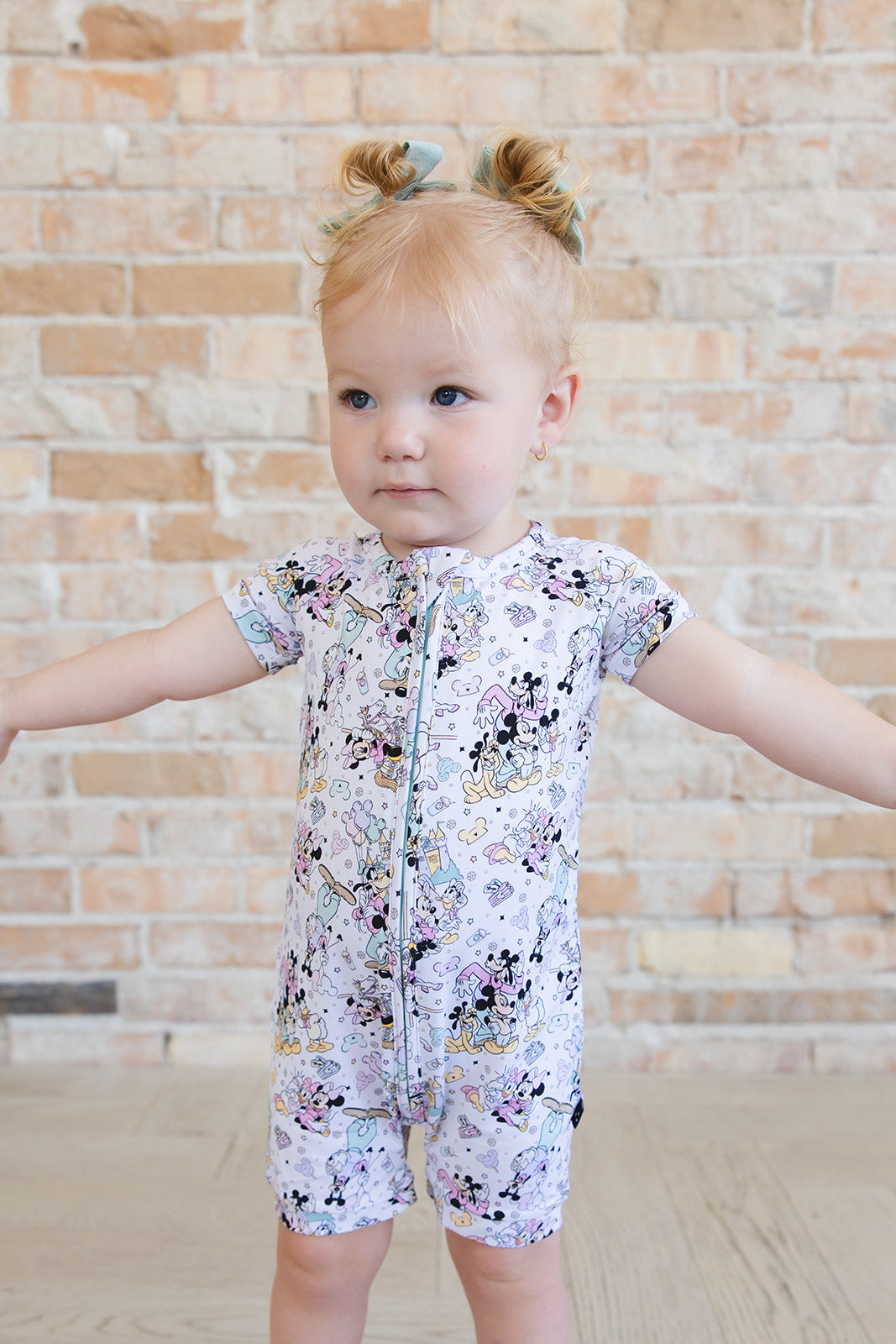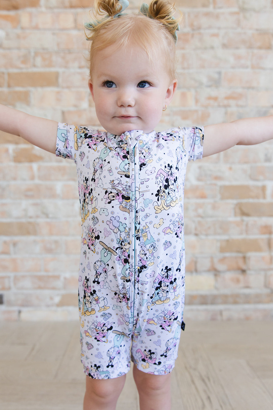 Our shorties are the ultimate warm-weather essential, designed for all-day comfort and play. Made from our signature buttery soft bamboo fabric, these one-piece short rompers are breathable, stretchy, and gentle on sensitive skin—perfect for little ones on the move.