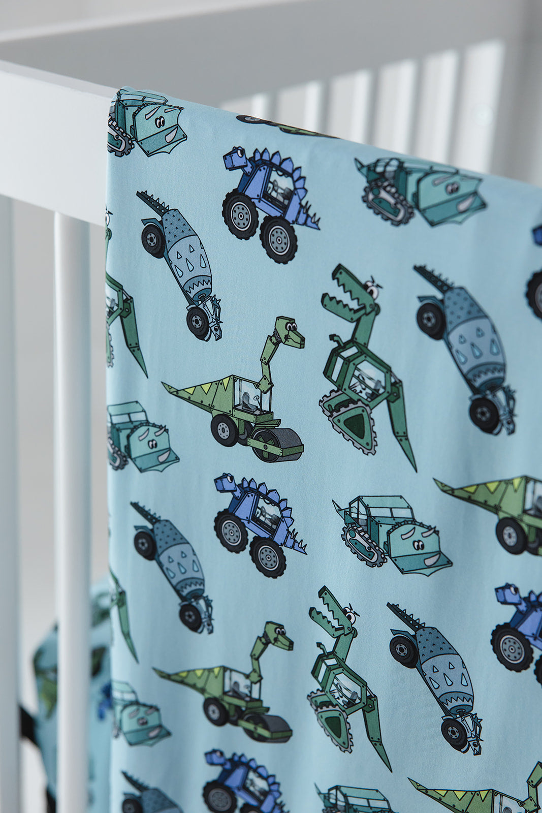 - Double-sided bamboo viscose: Printed design on one side, coordinating solid color on the other