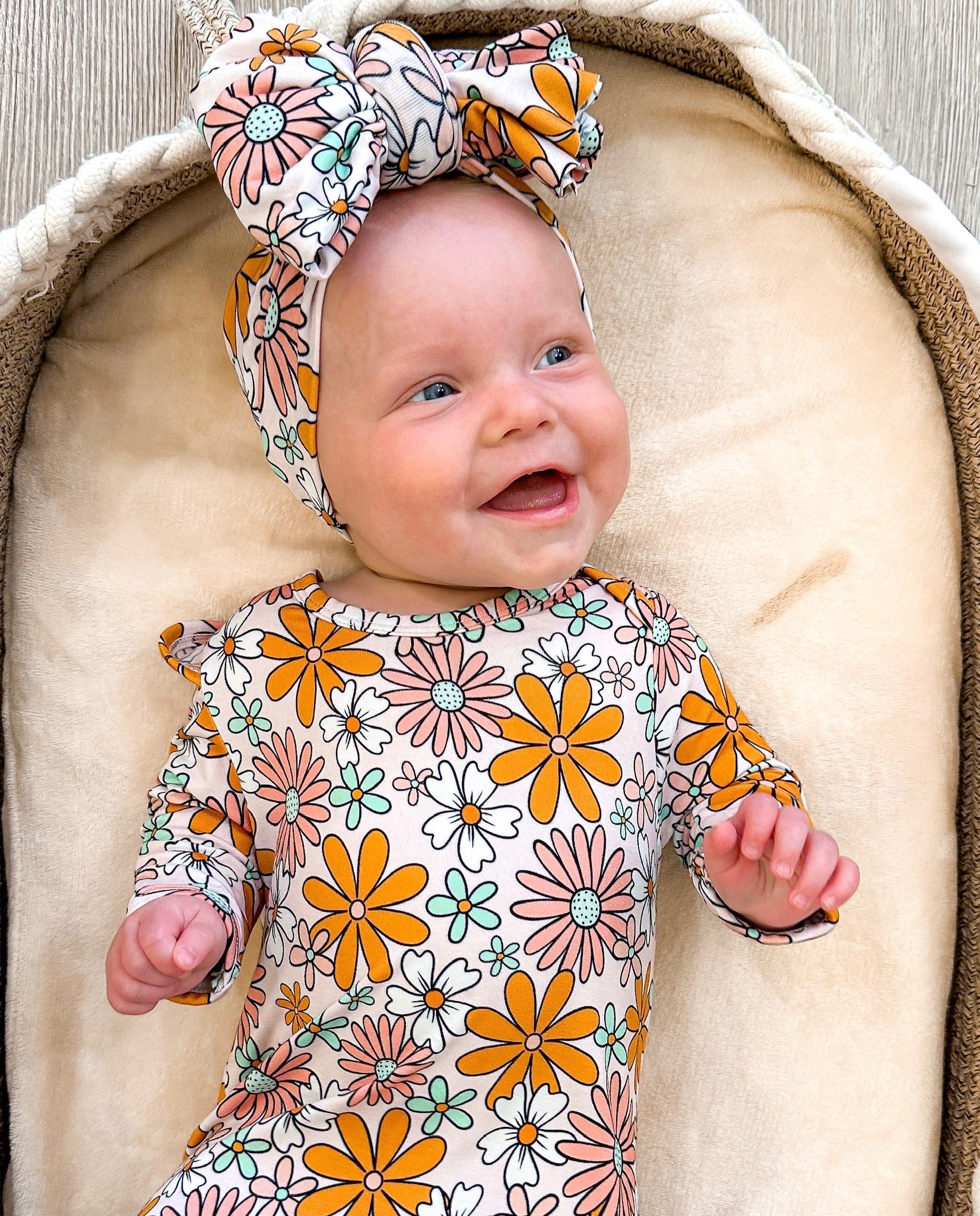 Bring your sweet baby home in a Tyed ‘N Knots gown. Made from viscose bamboo, designed to be incredibly cozy, breathable and buttery soft. Made with a new parent in mind, this gown easily ties at the bottom for quick diaper changes and has fold over cuffs to keep baby safe from scratching themselves.