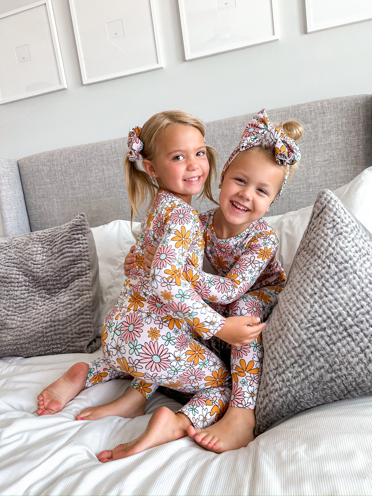 Tyed 'N Knots two-piece jammies are designed for all the snuggles! Made from viscose bamboo, designed to be incredibly cozy, breathable and buttery soft! Our jammies are made tagless so they won't cause irritation to sensitive skin. Confident that your little ones will look so cute and be comfortable and you will create a TNK collection in no time. A benefit to our two-piece set makes it easier for potty training. Featuring long sleeves and matching long pants, our two-piece sets are designed with added length to keep your babe comfy for longer!