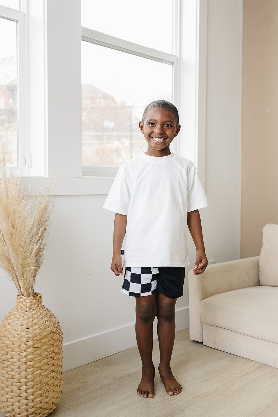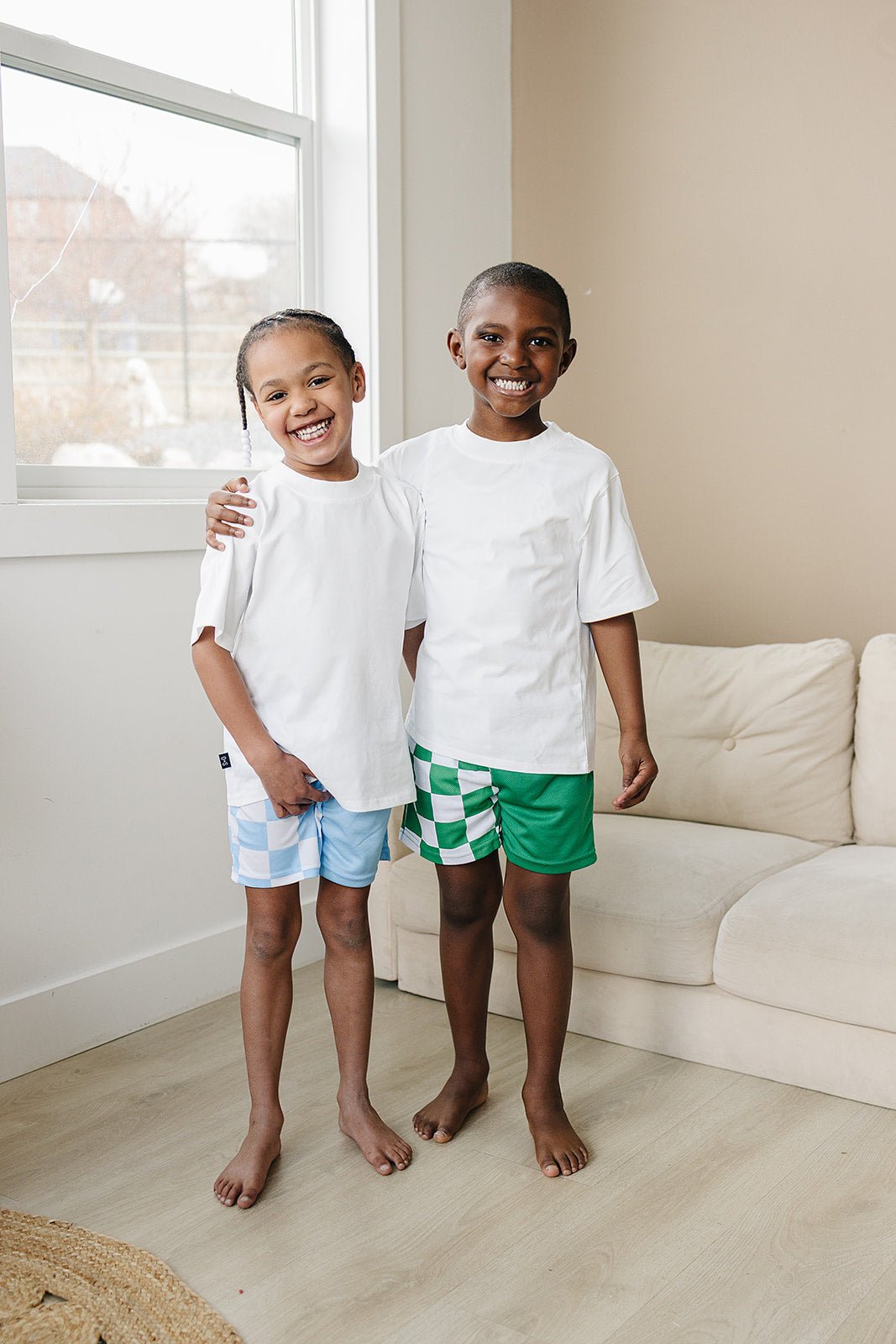 Get your little hooper ready to hit the court with these playful Ian Shorts! Featuring a unique checkered design on one leg and a solid color on the other, these lightweight and breathable basketball shorts score a perfect 10 for style. Ideal for outdoor play, these shorts are sure to be a slam dunk!