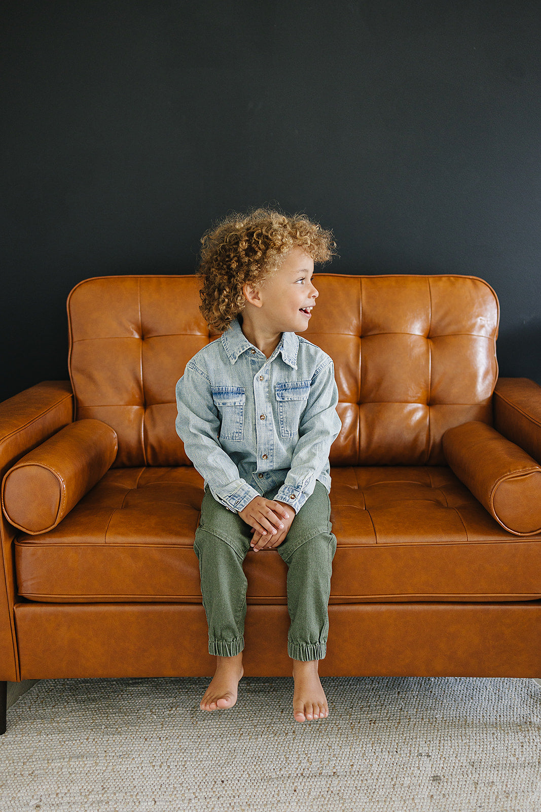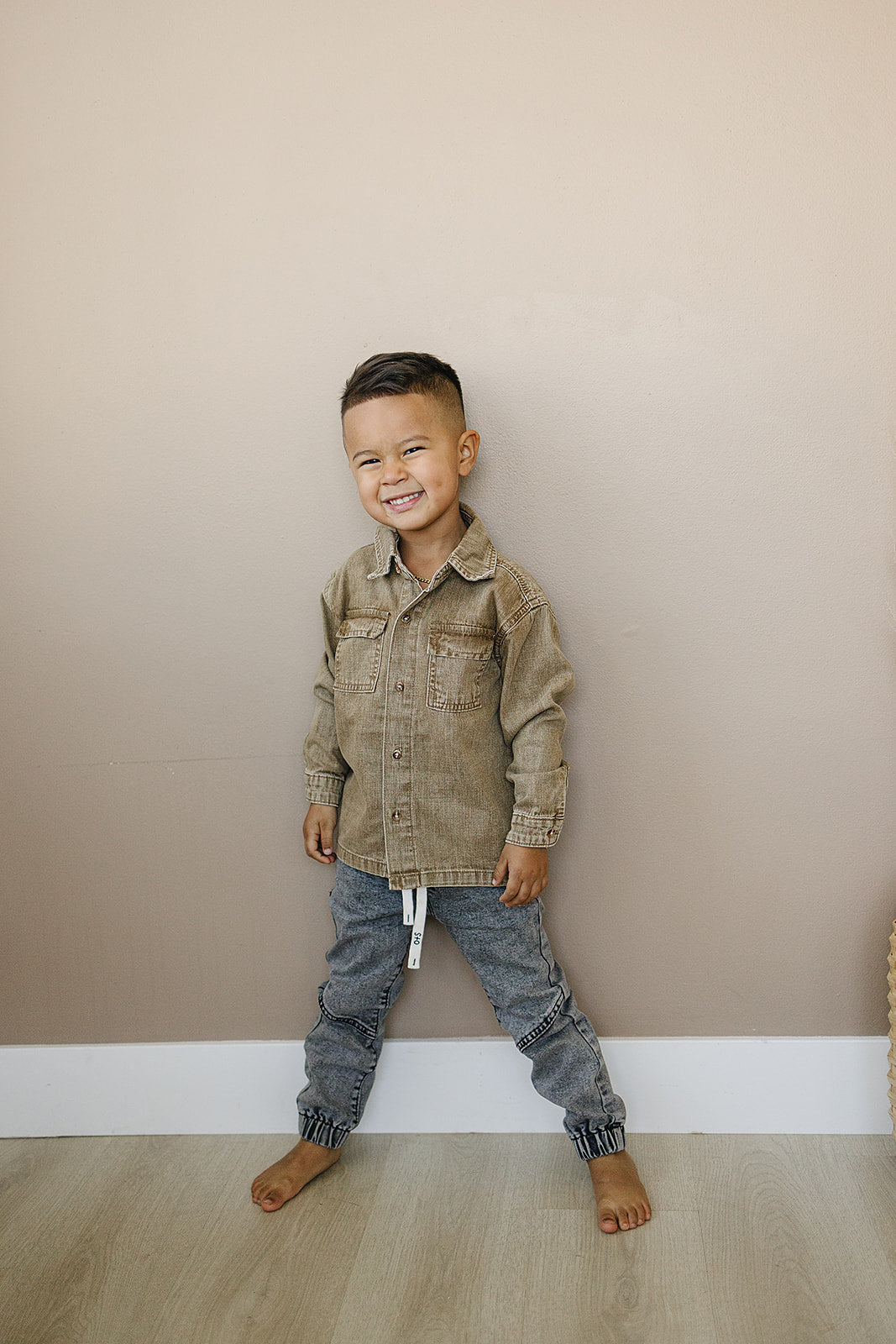 Add some cool factor to your little one's wardrobe with our Jagger Denim Shirt. Made with soft denim, this versatile shirt can be worn on its own or layered as a jacket. With a button-up chest and sleeves, and 2 chest pockets, it's both stylish and functional. Available in 3 colors that will go with any outfit.