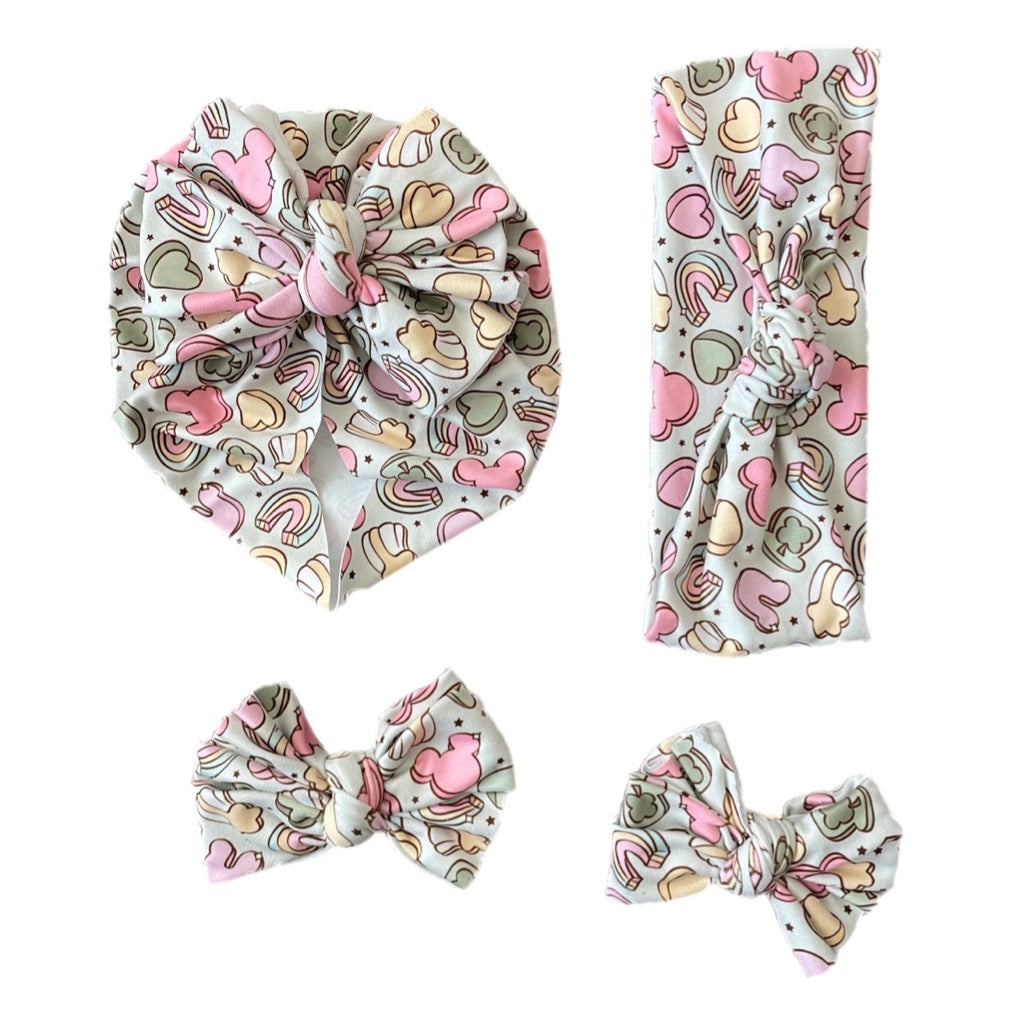 Available in a turban, headband (match your mini!), piggies, or our BRAND NEW bows!