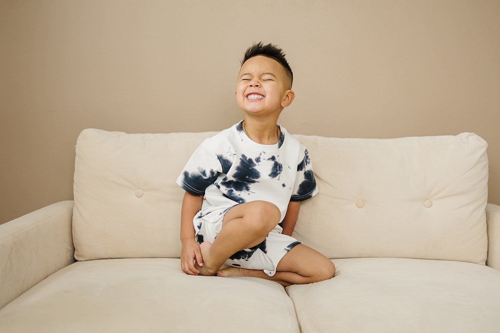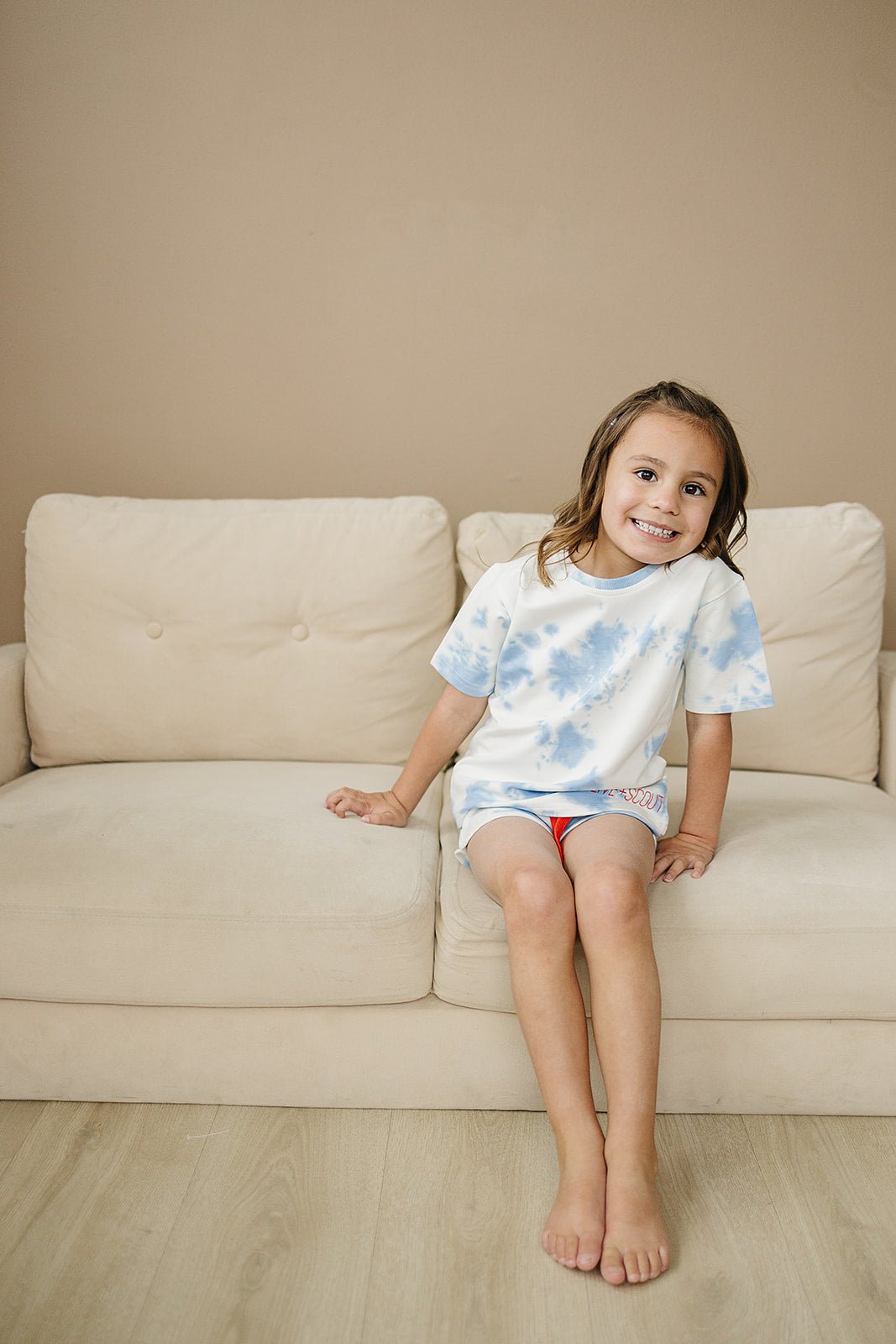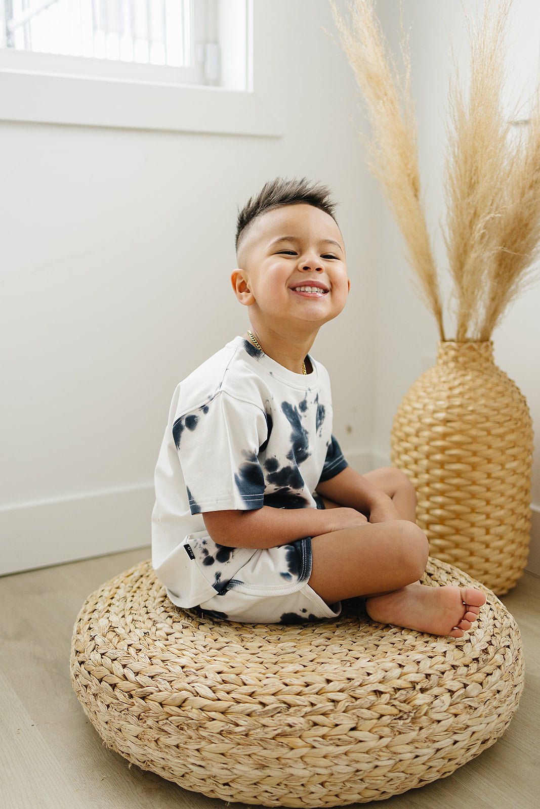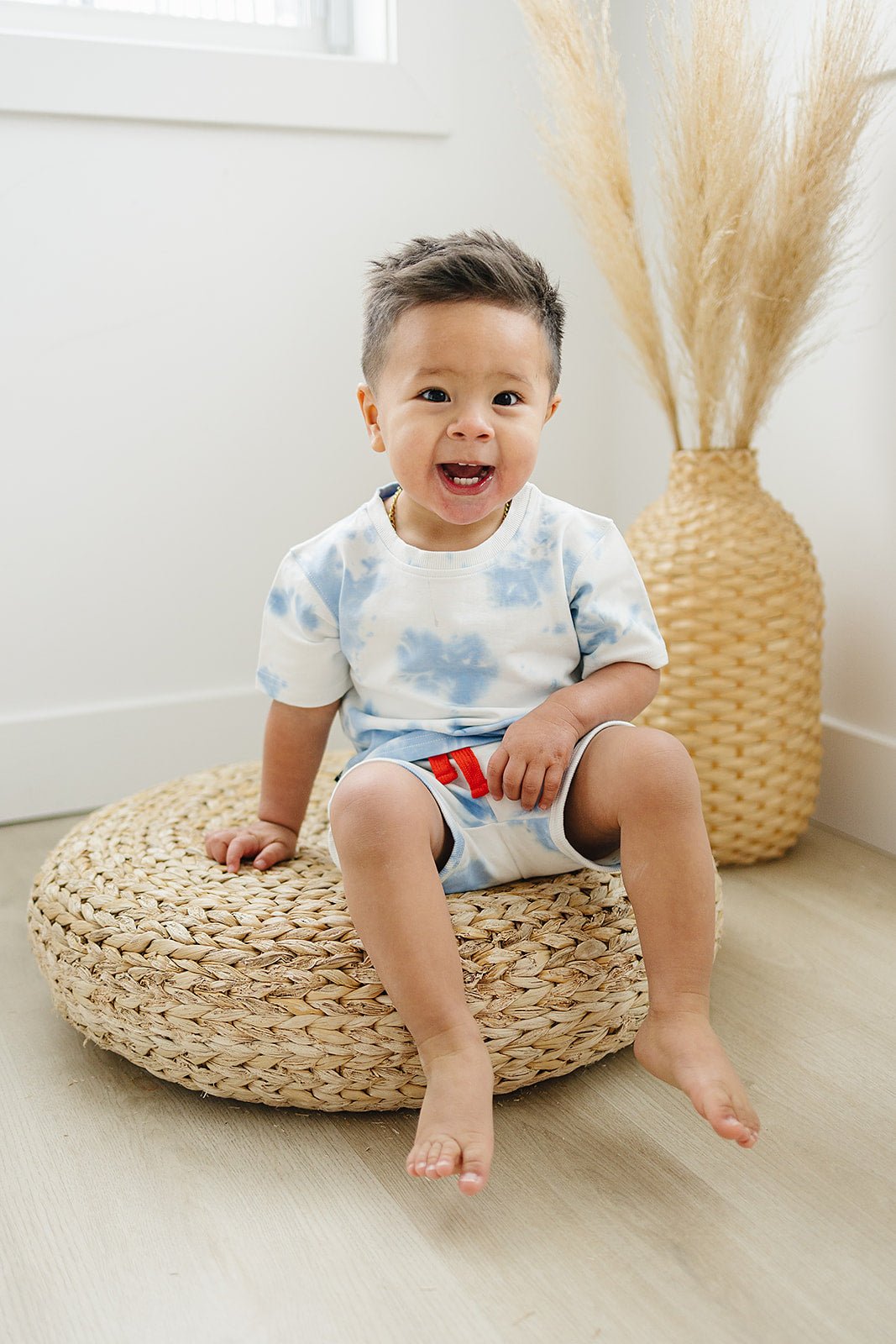 Get your little one ready for their next adventure with the Kai Set. The tie-dye colors and contrasting red print logo add a unique and fun touch while hiding any spills or stains. The elastic waistband and functional drawstring make it easy to wear and play in. Perfect for the young and adventurous!