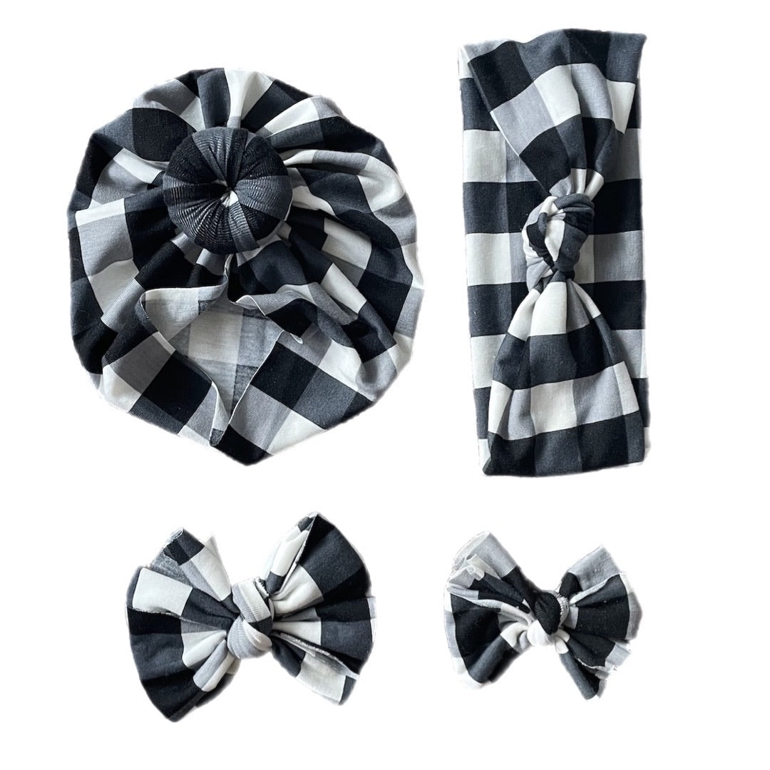 Available in a turban, headband (match your mini!), piggies, or our BRAND NEW bows!