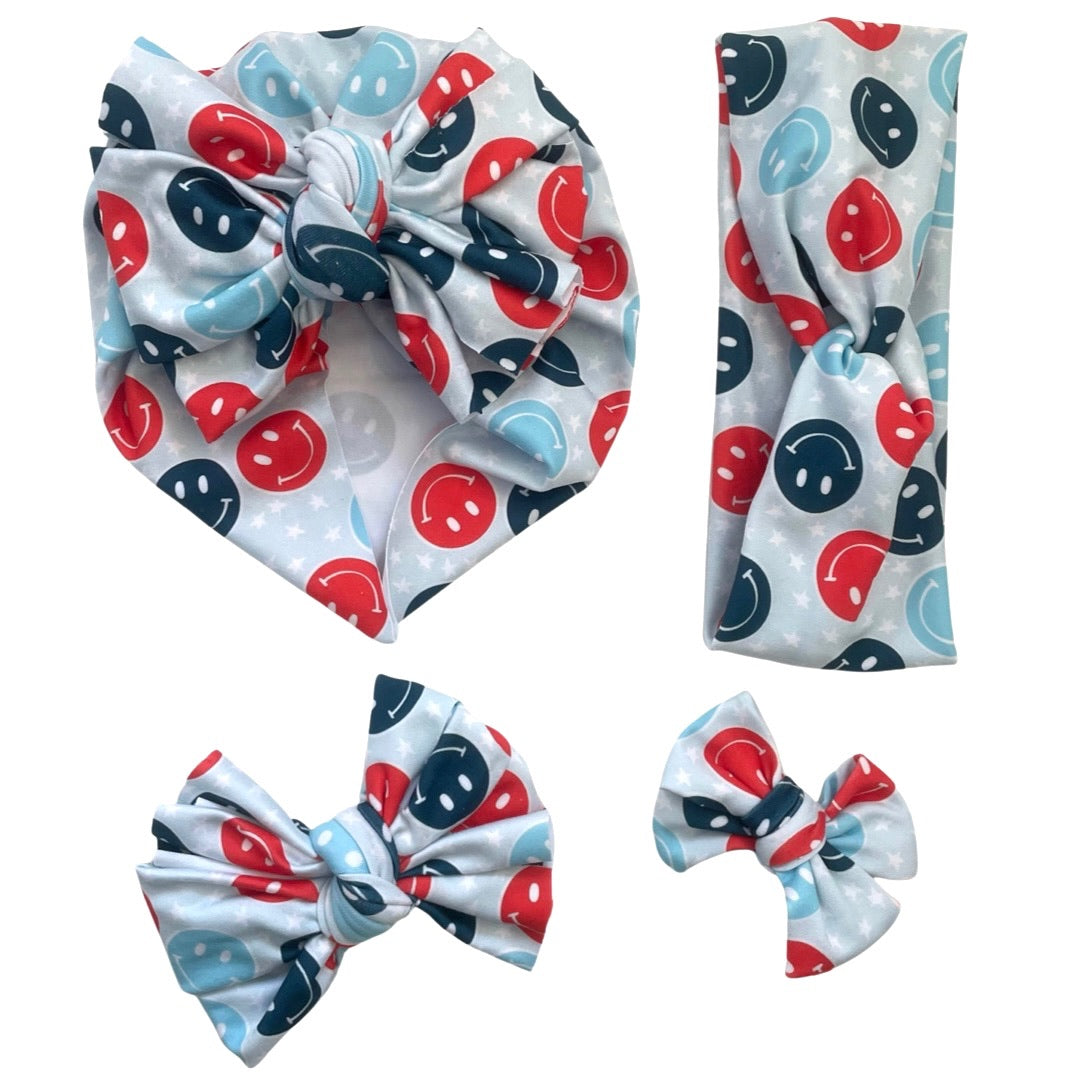 Available in a turban, headband (match your mini!), piggies, or our BRAND NEW bows!
