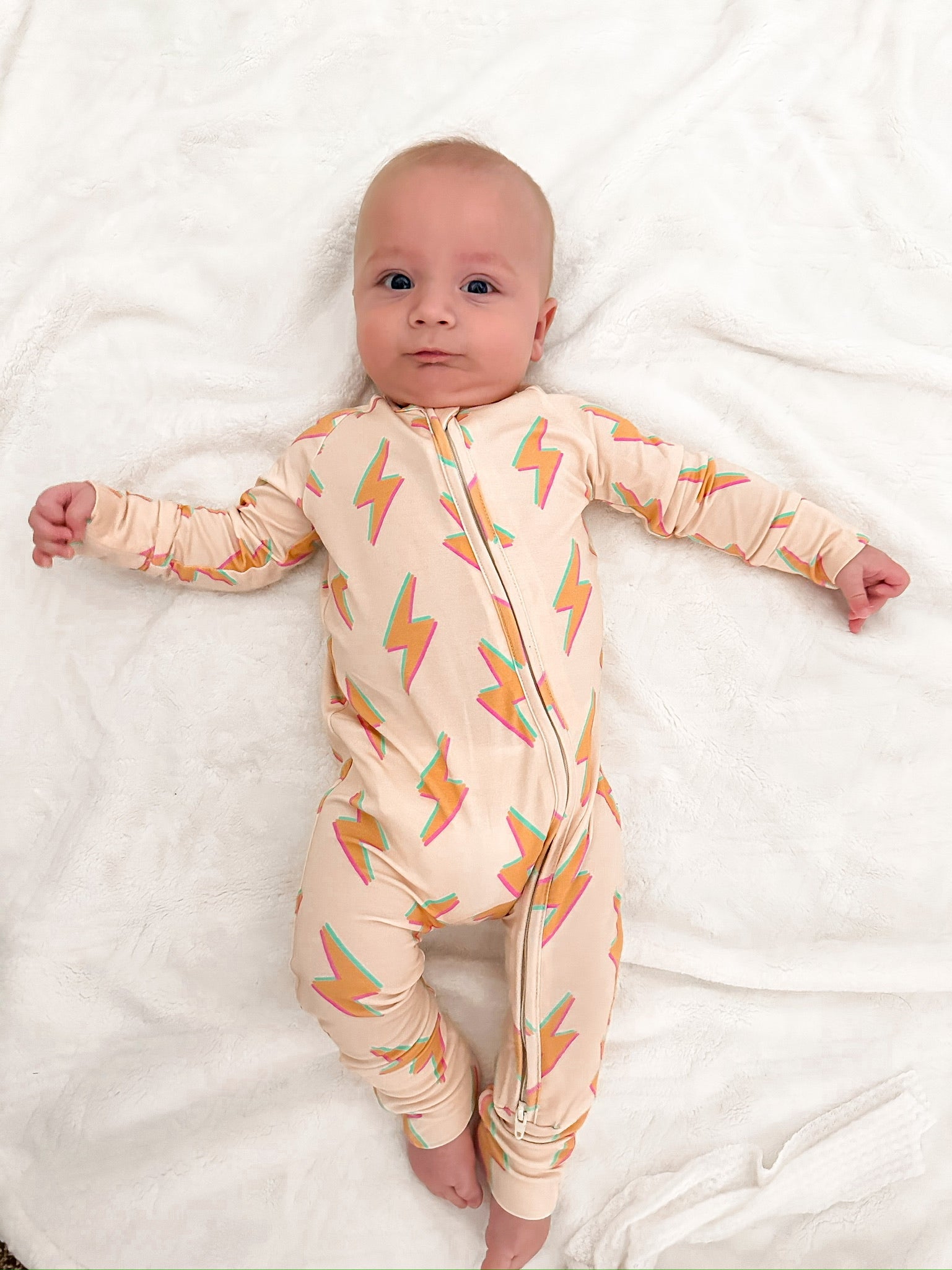 Tyed 'N Knots Zip-Up Jammies are designed for all the snuggles! Made from viscose bamboo, designed to be incredibly cozy, breathable and buttery soft! We've added a two-way zipper for easy diaper changes! Our jammies are made tagless so they won't cause irritation to the skin. Guaranteed a TNK collection will start once you get your babes in these!