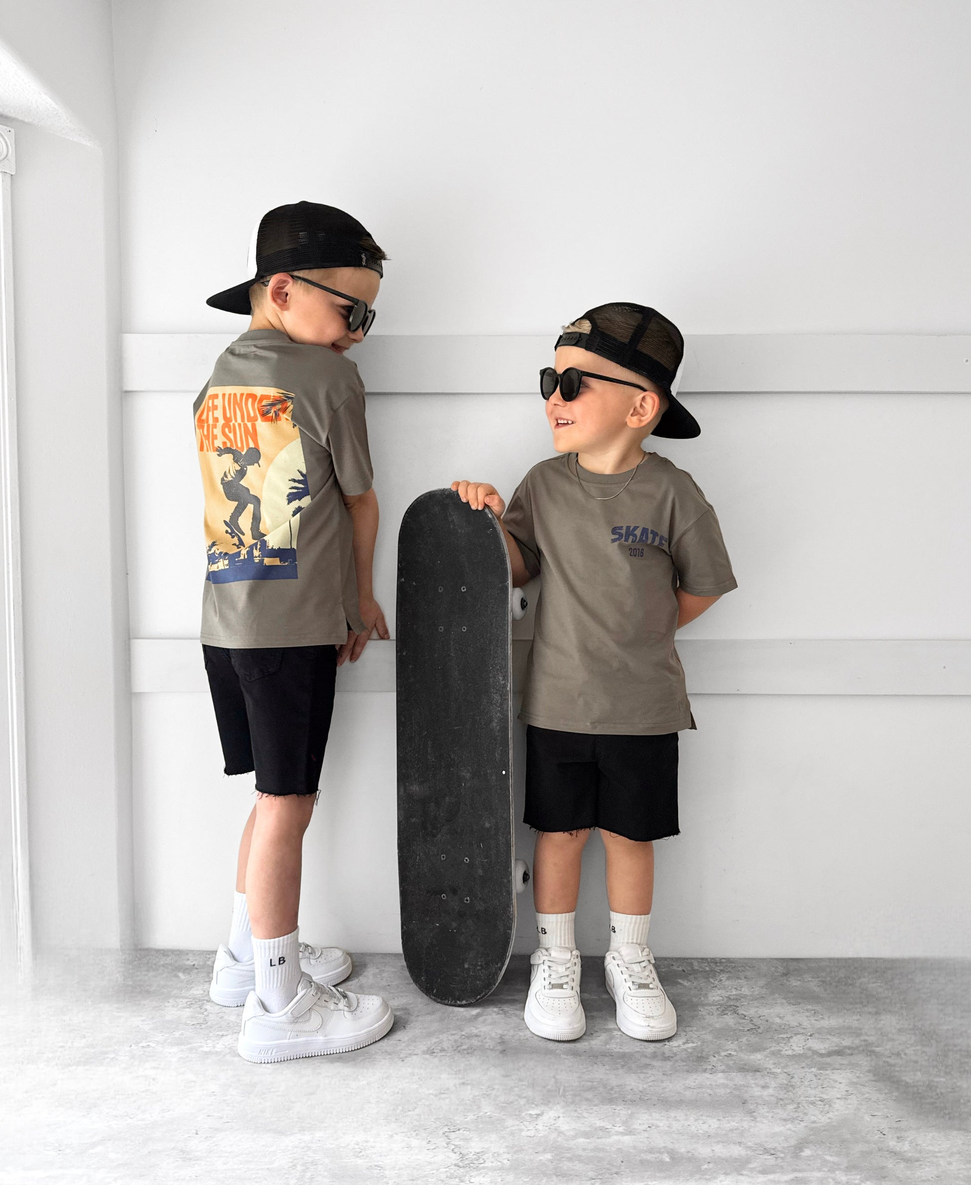 For the kid who’s always chasing the next trick (or snack). The Skate Bro Tee brings major skater attitude with a bold “Skate” graphic up front and a laid-back “Life Under the Sun” vibe on the back—because skate life is 24/7. Designed with a chill drop shoulder, relaxed sleeves, and a slightly longer back hem for that perfect throw-on-and-roll look. Side slits keep it breezy, whether they’re catching air or catching rays. Finished with our signature embroidered “LB” and a printed care label—no scratchy tags here.