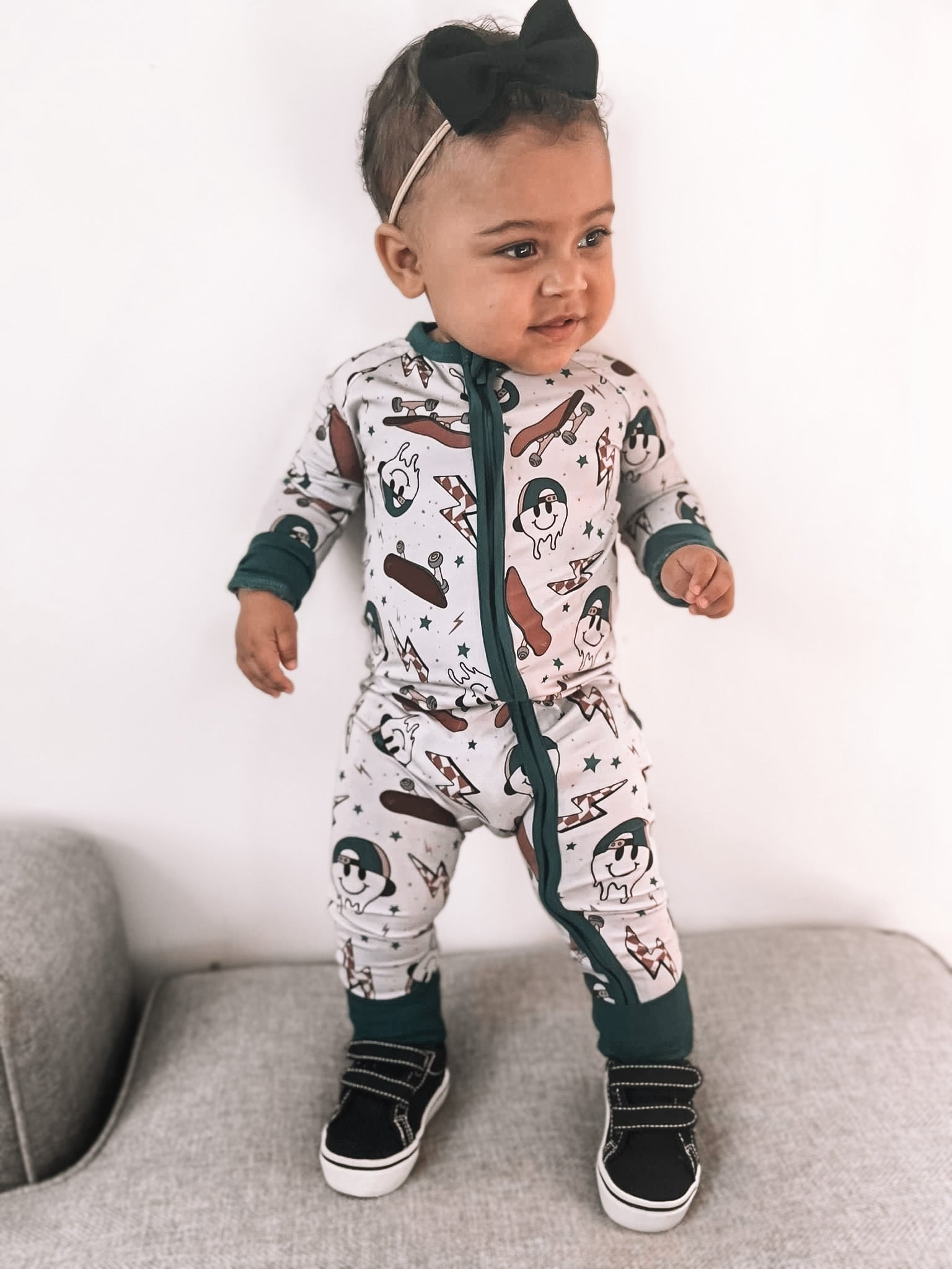 . Fold-over ankle cuffs to easily covert into a footie (0-24M)