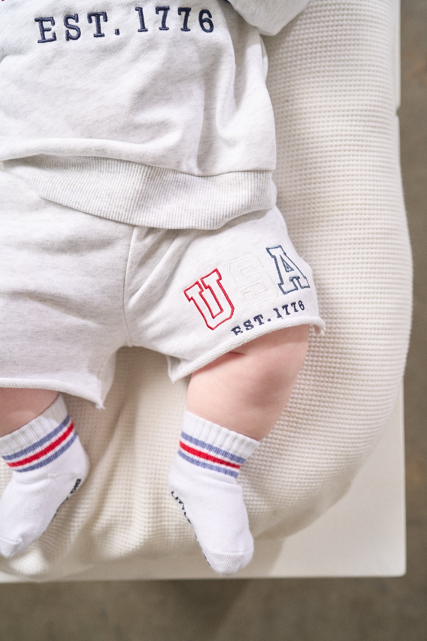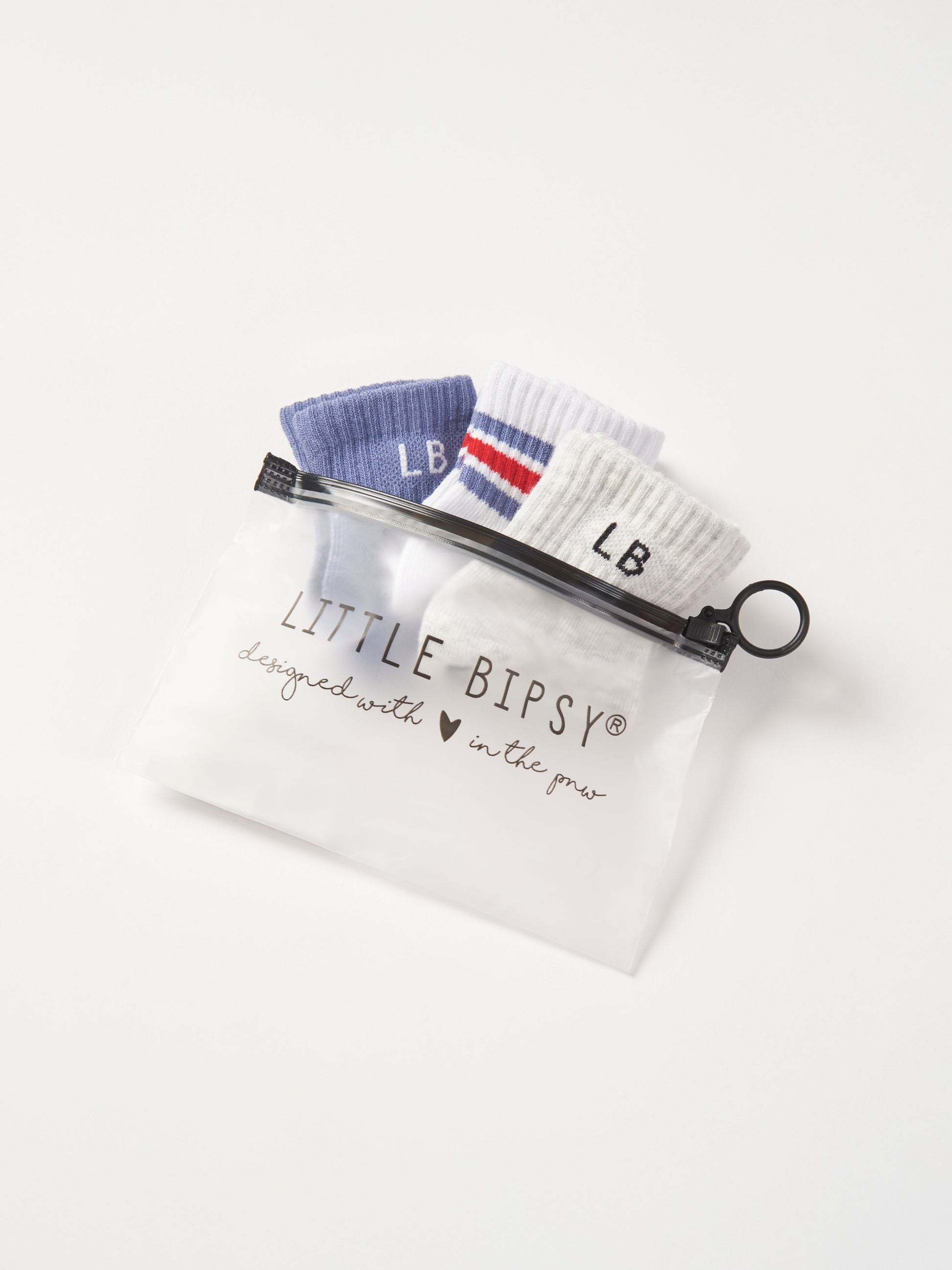 Step up your outfit with this 3-pack of USA-themed socks! In navy, grey, and white with bold red and blue stripes, these socks are perfect for little patriots. A must-have for showing off some USA pride from head to toe!
