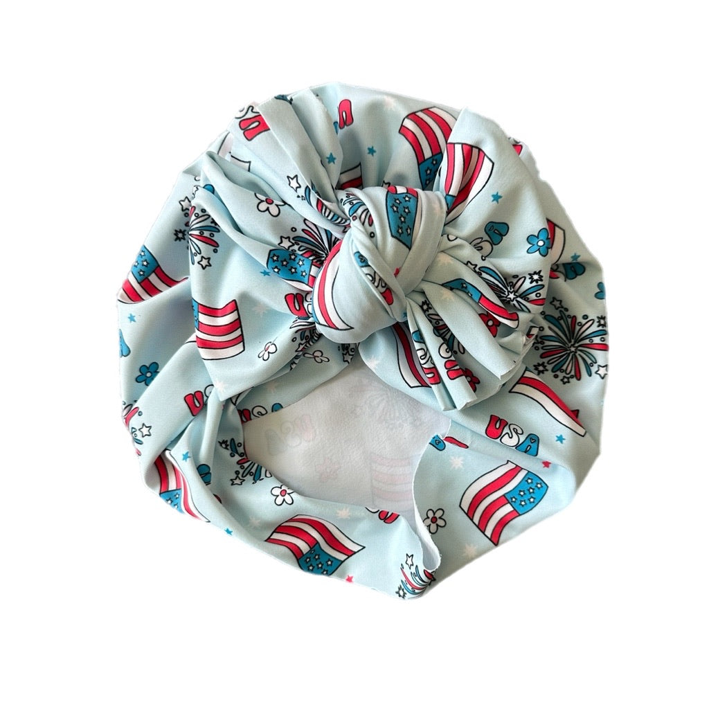 Sizes are based upon average head circumference for specific age groups. When in doubt, size up! Fabric stretch will vary.