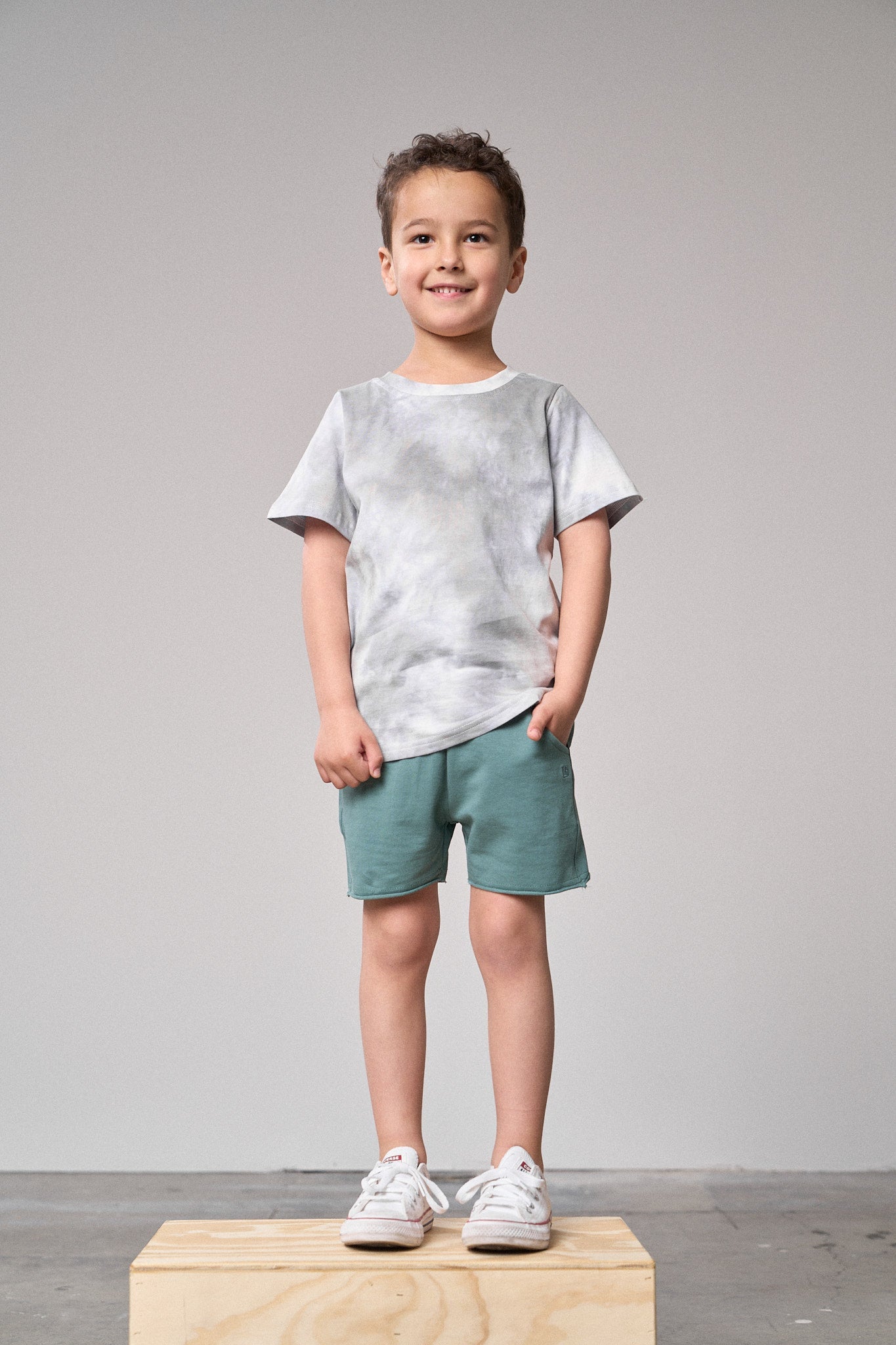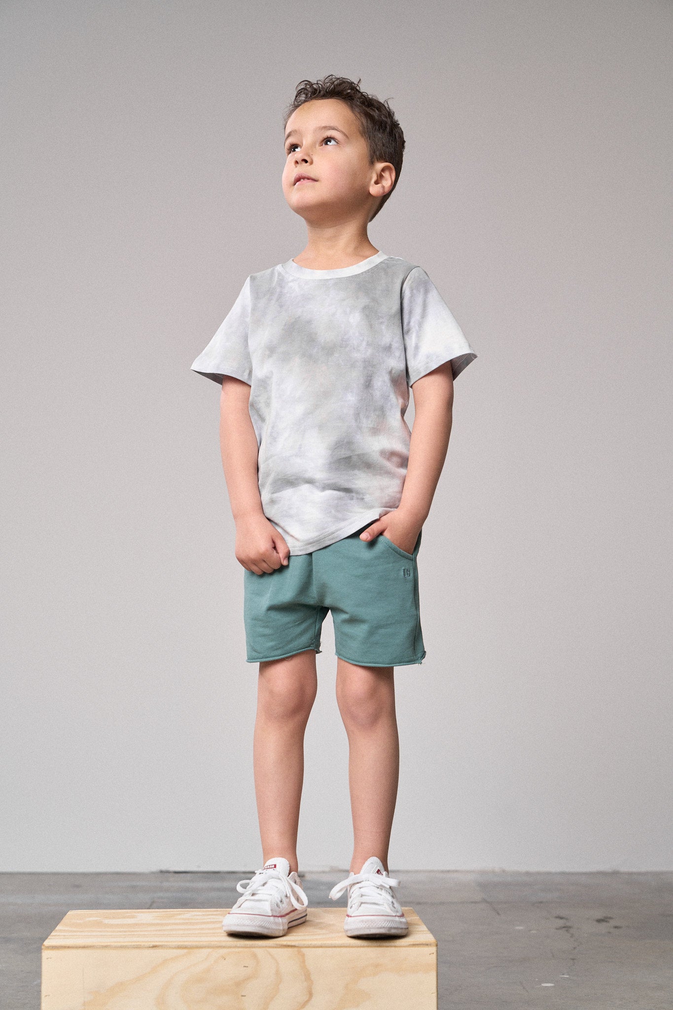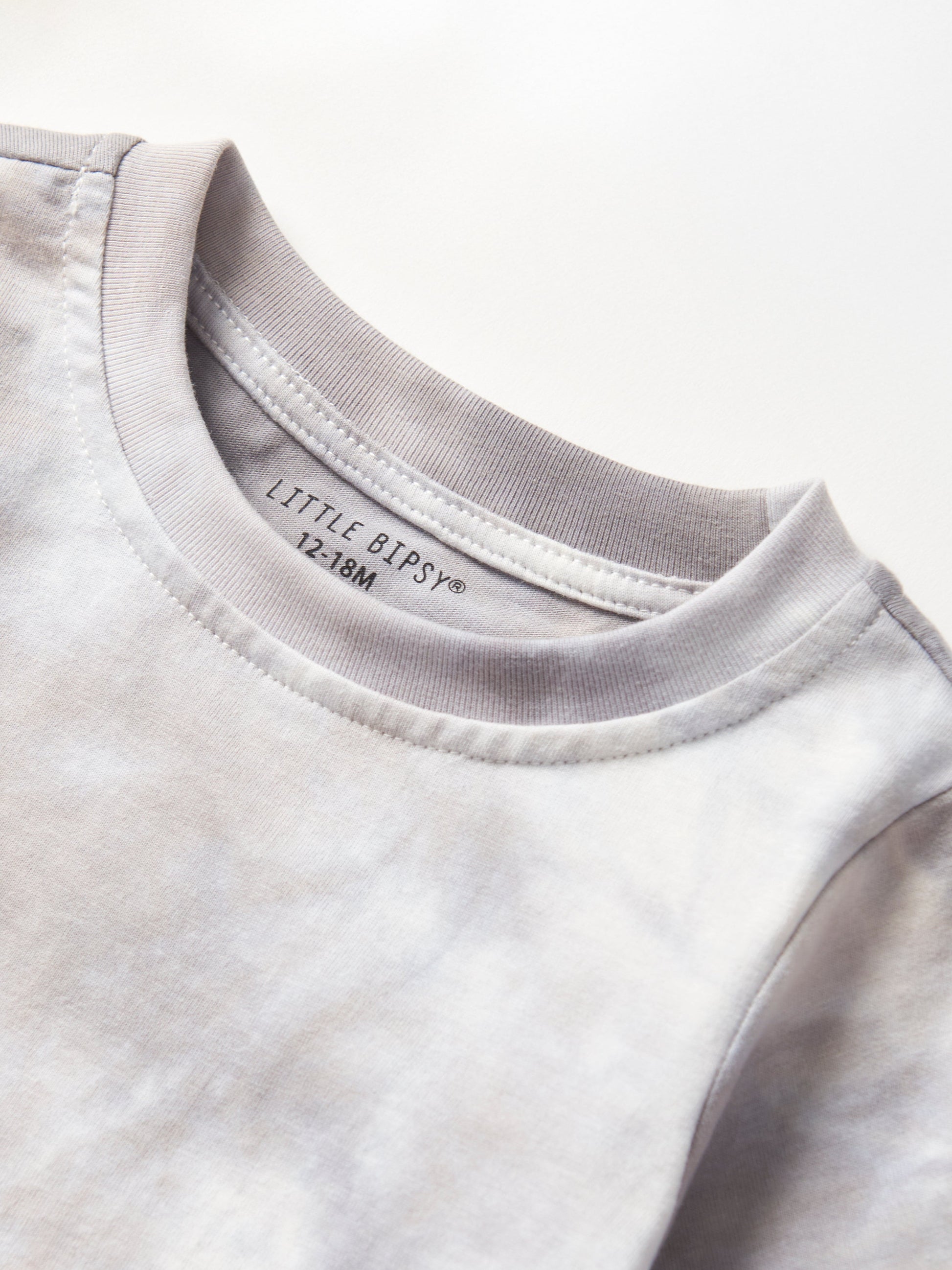 Add a touch of laid-back style to your little one's wardrobe with our Grey Tie Dye Tee. Featuring a cool, modern grey tie-dye pattern, this tee brings a fun, casual vibe to any outfit. With a slight high/low bottom hem and side slits, it offers a relaxed fit that provides both comfort and freedom of movement—perfect for playdates, weekend outings, or just chilling at home.