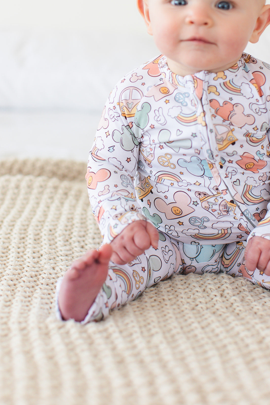 With fold-over wrist and ankle cuffs for added comfort and a double zipper for effortless diaper changes, our zippies are a game-changer for busy parents. The tagless design guarantees irritation-free wear, making them ideal for all-day lounging and play.
