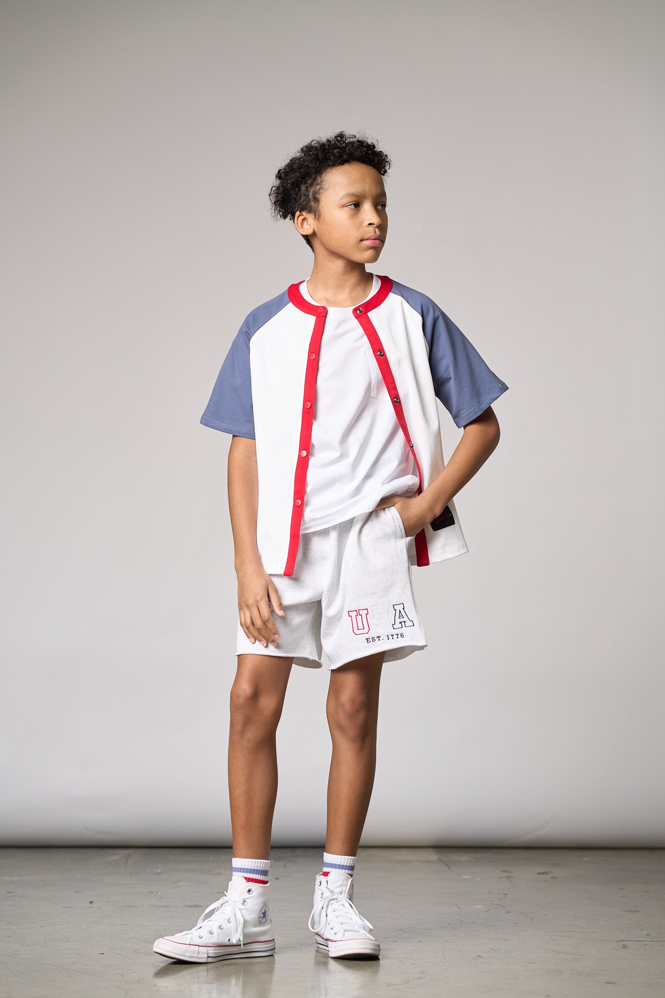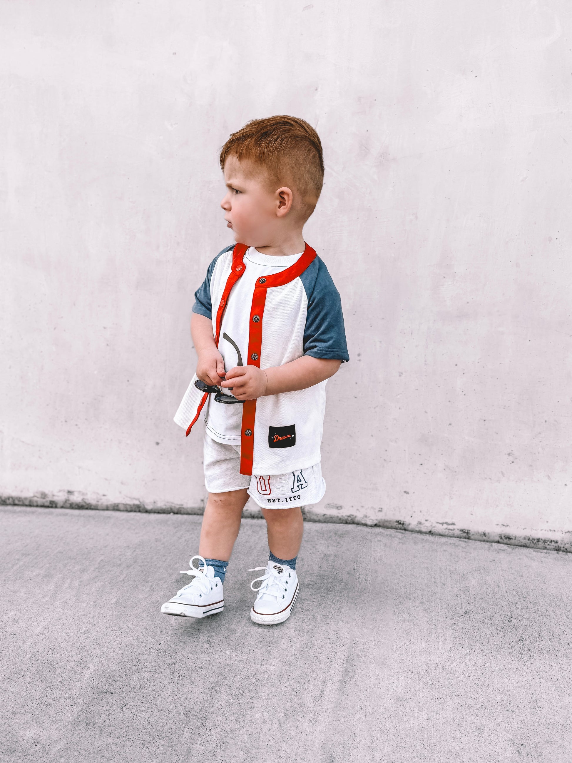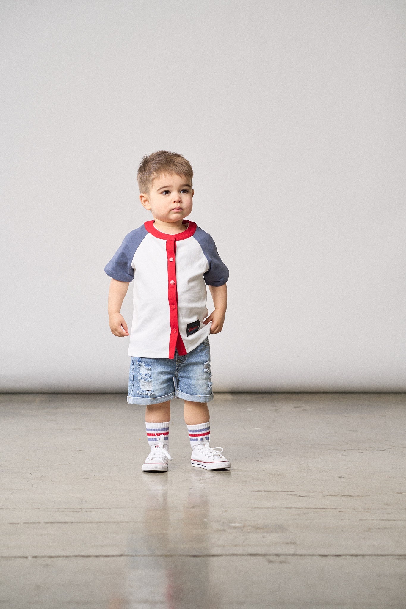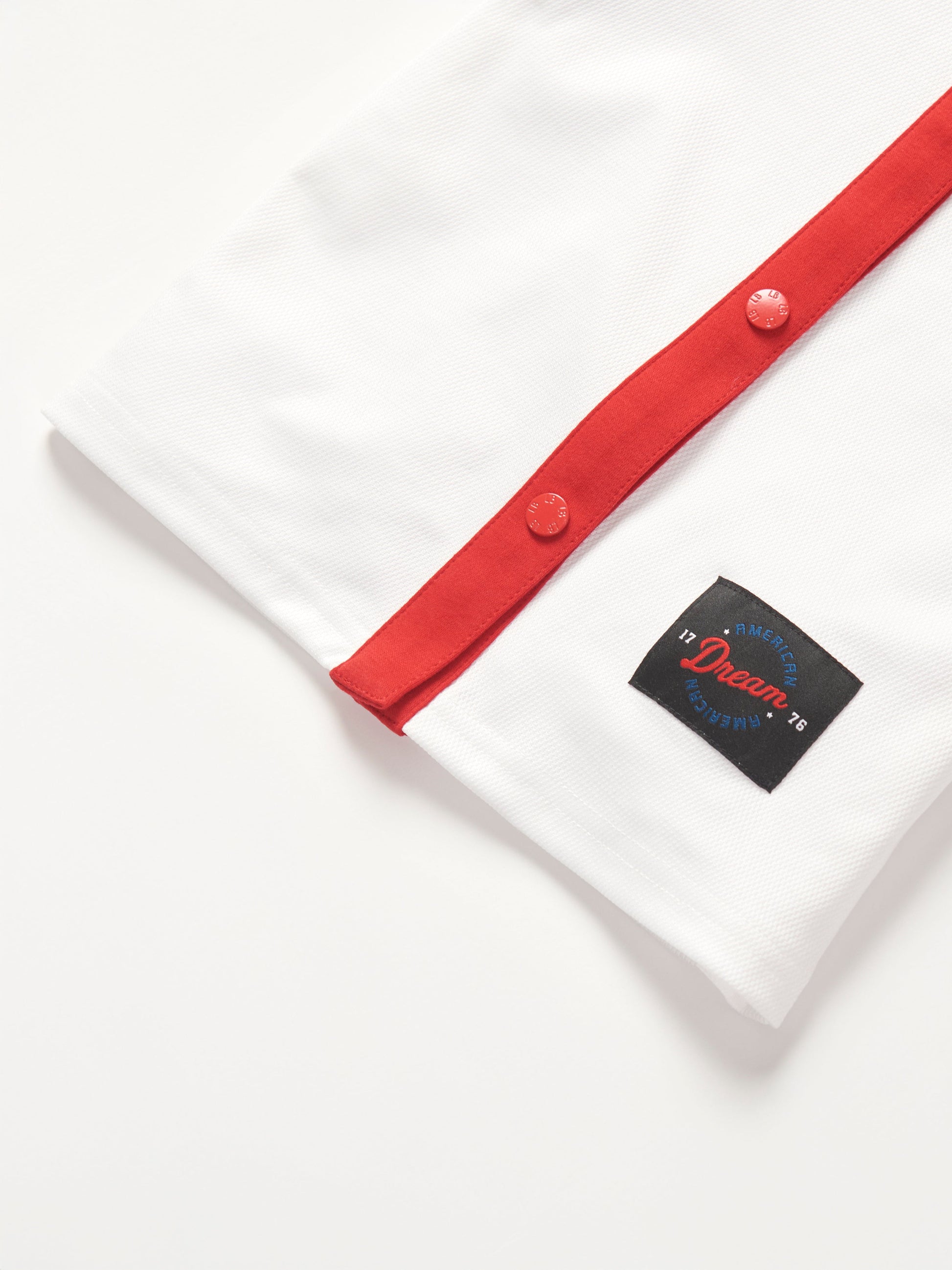 Rep the USA in style! This white jersey with red and blue accents features an embroidered "USA" on the back and a cool “American Dream” tag. This jersey is a perfect piece to elevate your outfit for any celebration or a day at the fields.