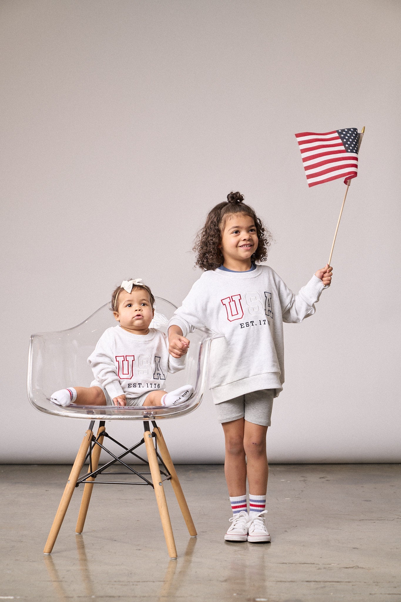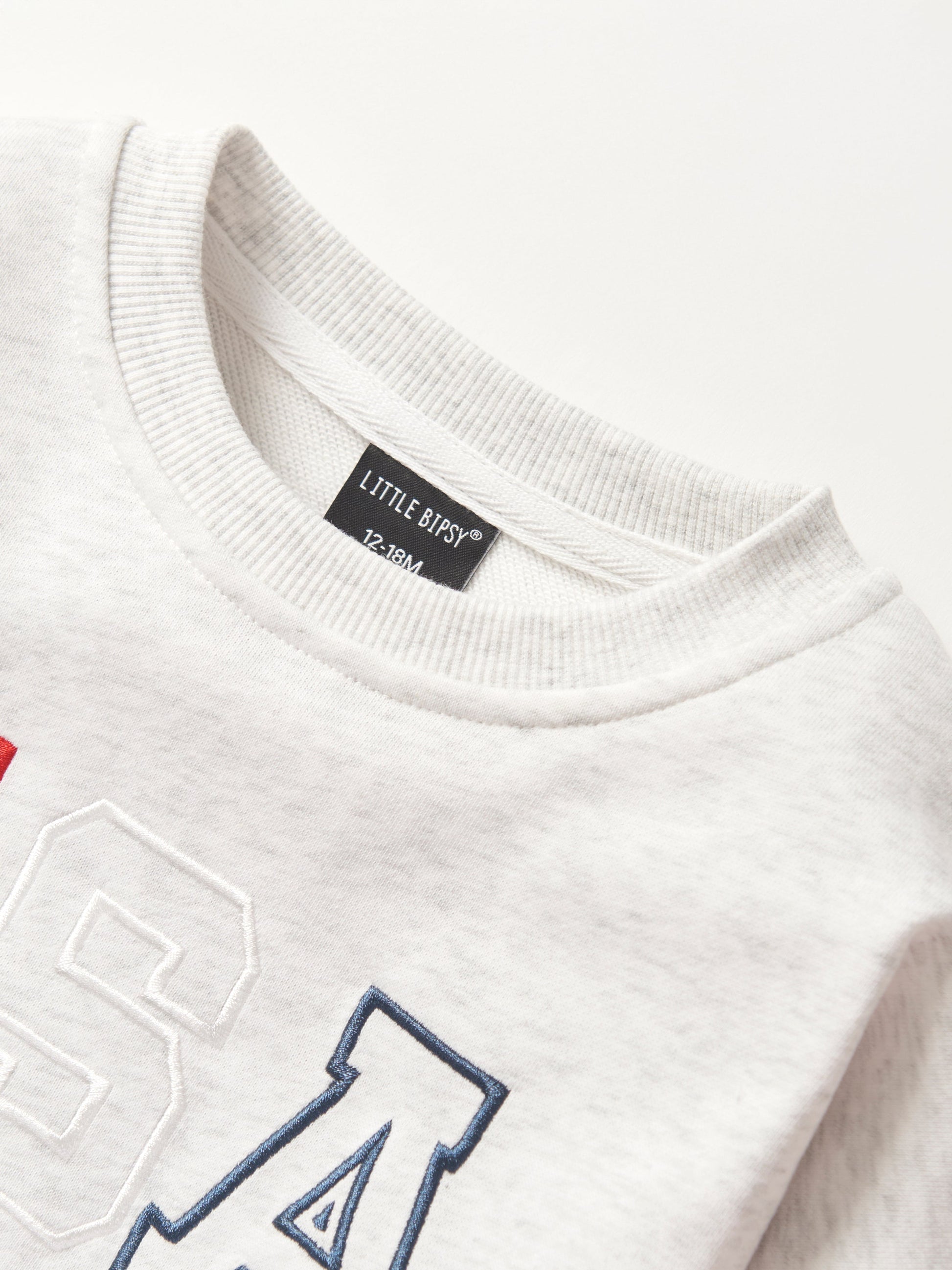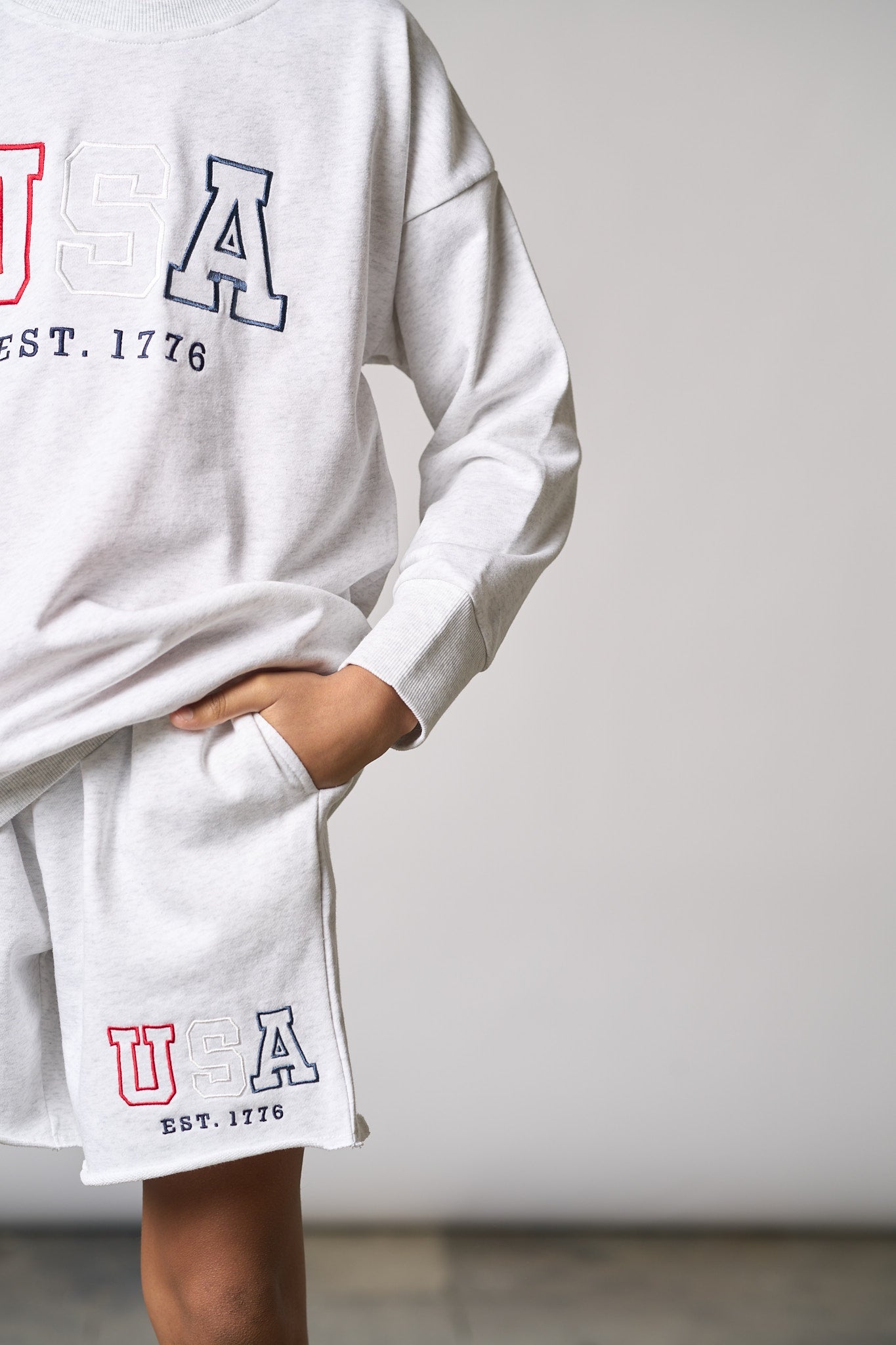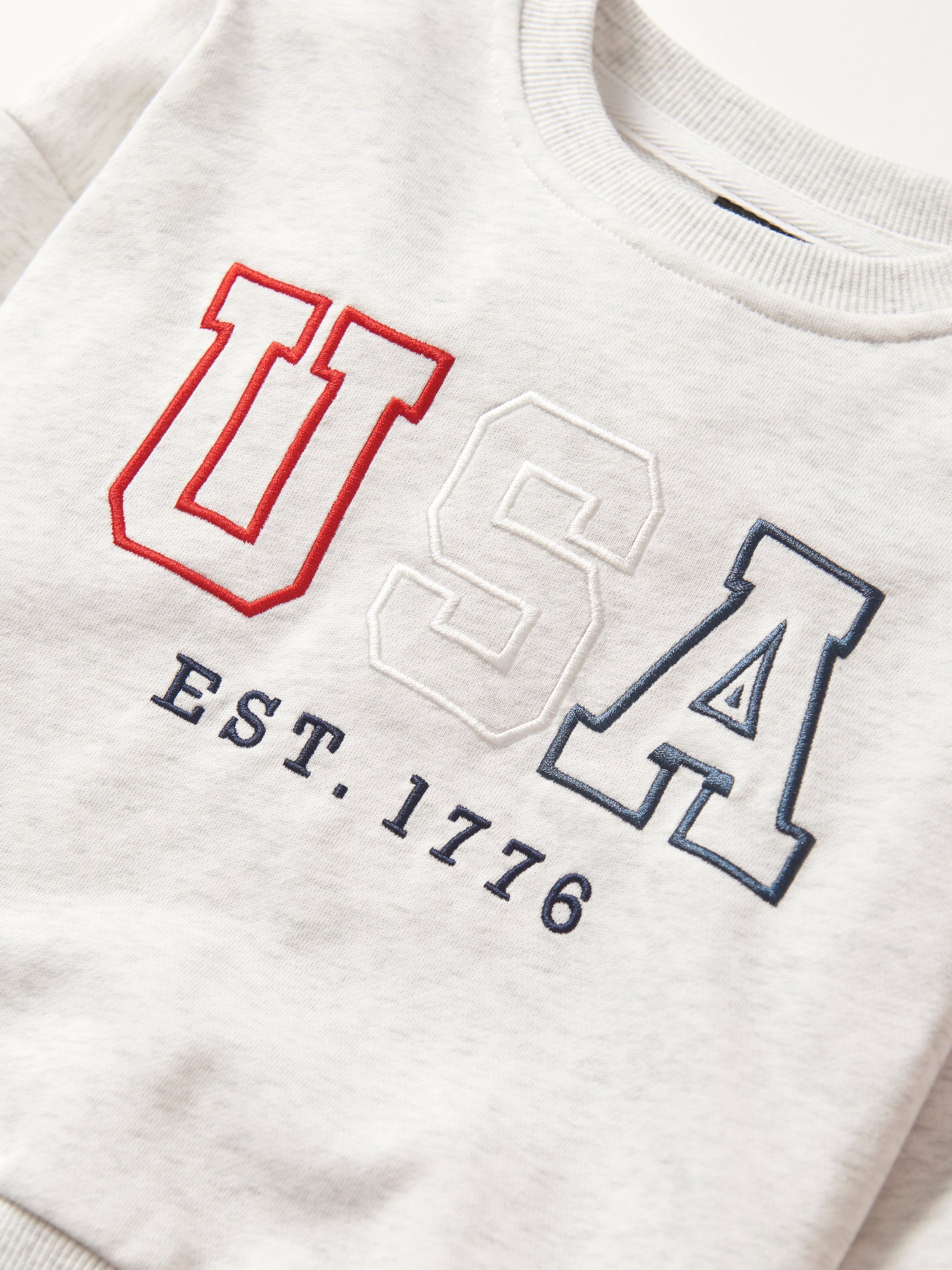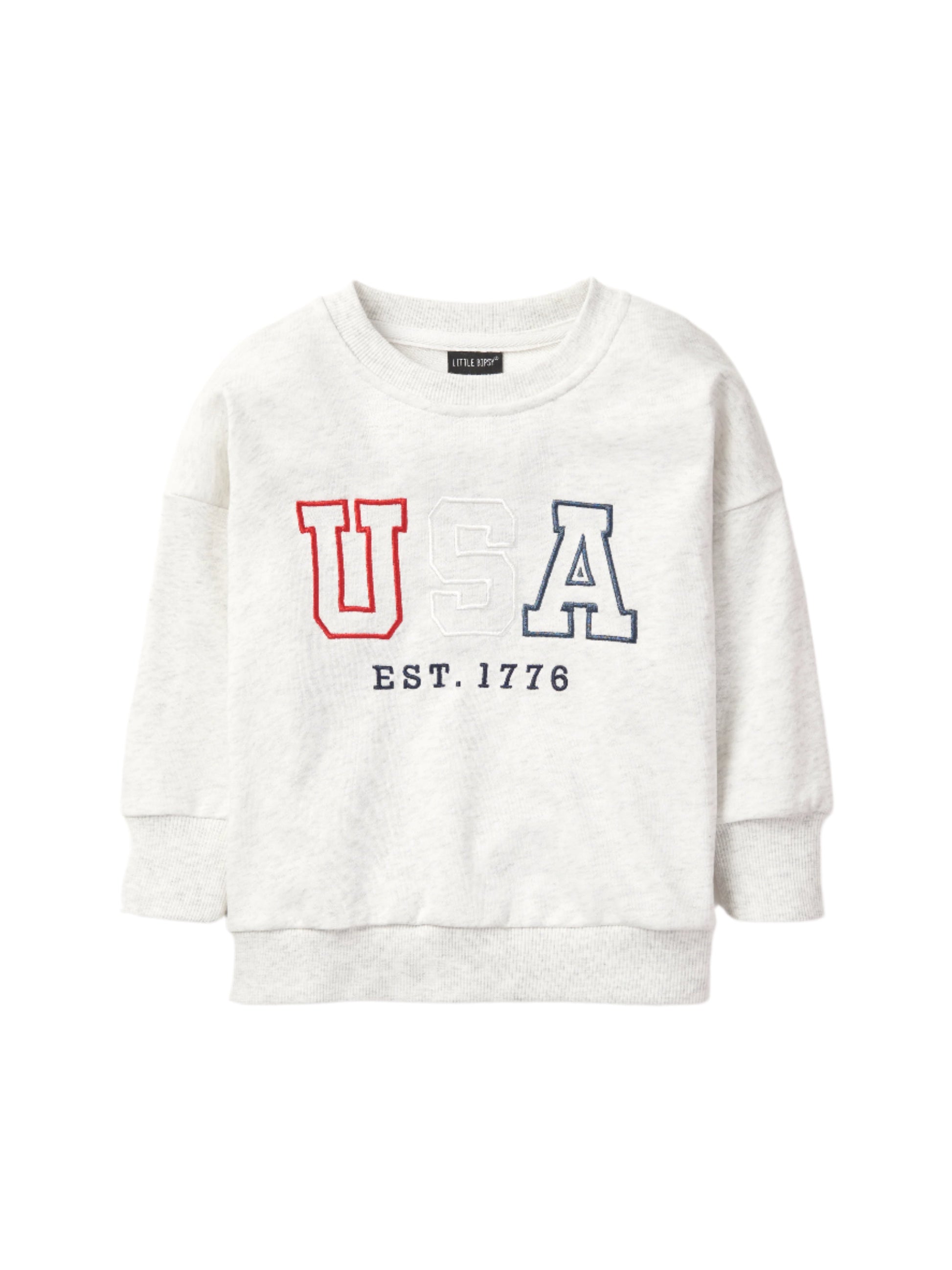 Show your USA spirit in comfort and style with this heather grey crew neck! Featuring an embroidered "USA" graphic, it’s got a cozy ribbed neckline, wrist, and bottom hem. Perfect for anyone, big or small, who wants to sport their love for the USA in a cool, casual way!