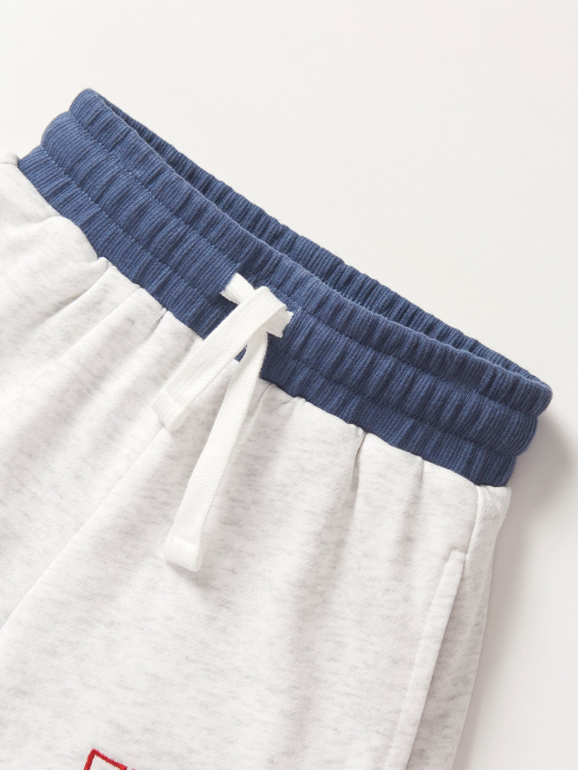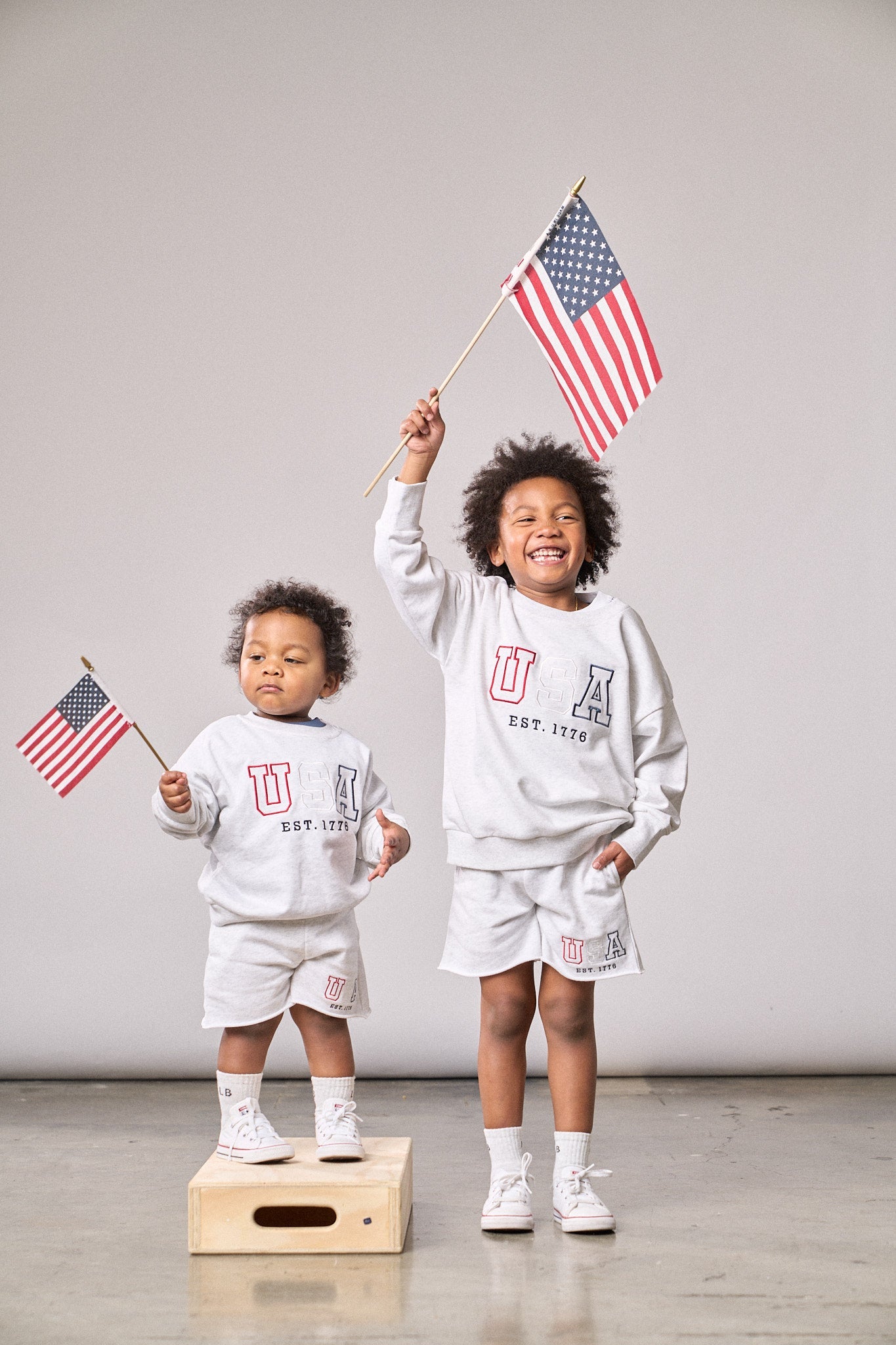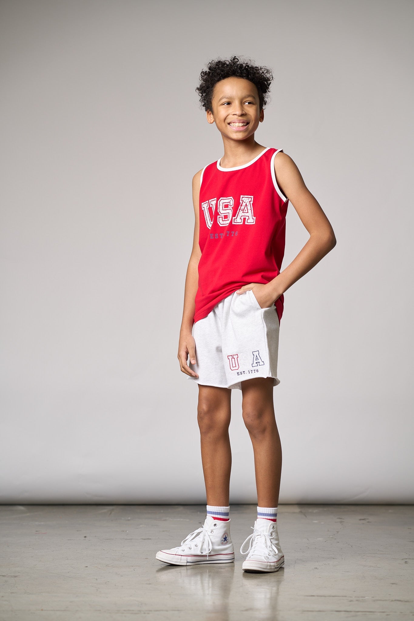 Stay comfy and stylish in these heather grey sweat shorts with a cool navy waistband! Featuring a rollable elastic waistband and a functional drawstring for the perfect fit, these shorts are all about comfort. With two front pockets, one back pocket, and an embroidered "USA" design, they're ready for any laid-back, patriotic day.