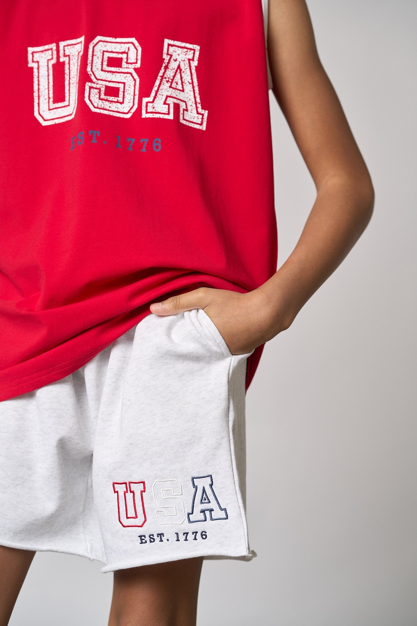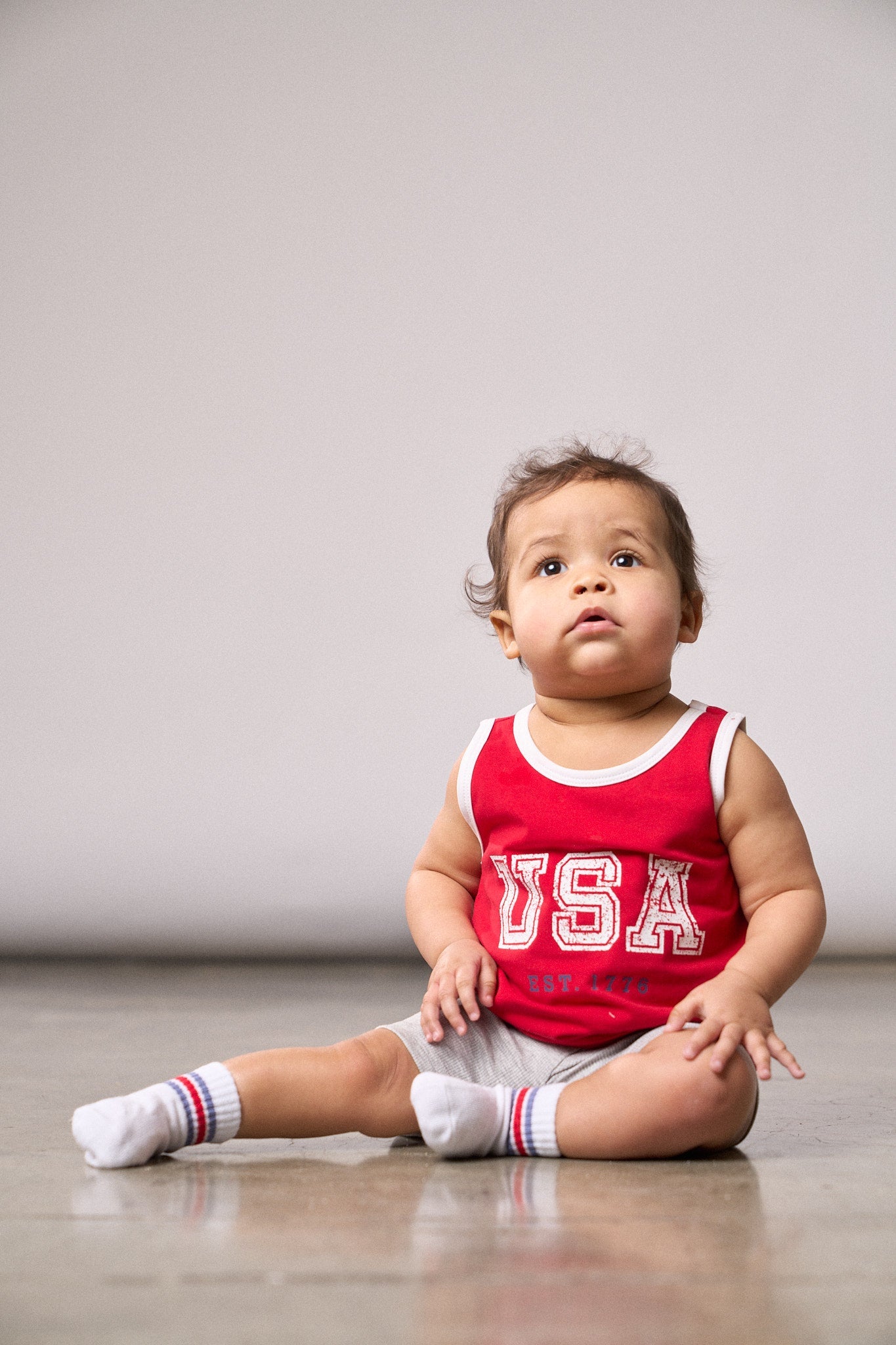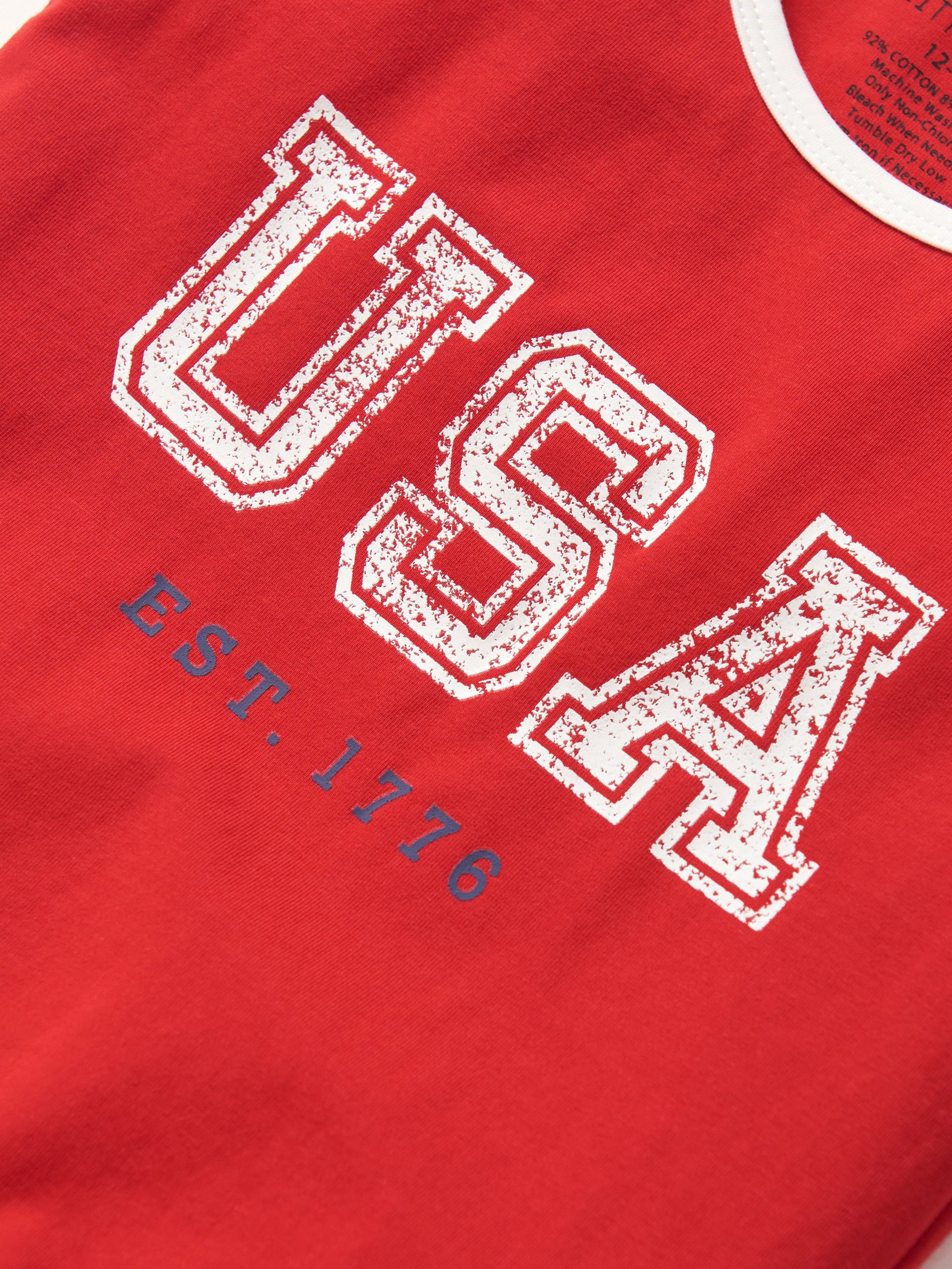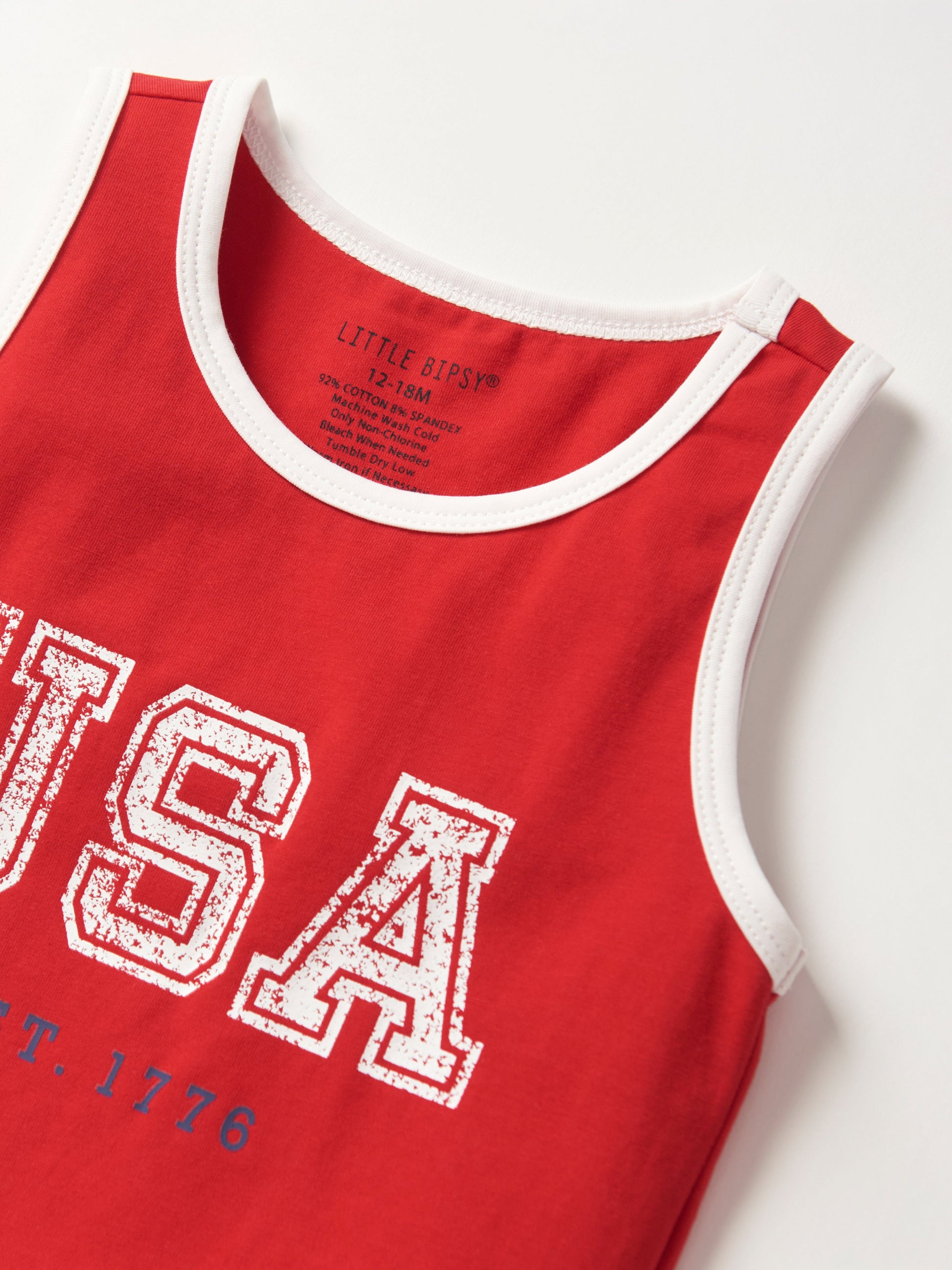 Celebrate in style with this bold red USA tank! Featuring a cool "USA" graphic and white trim, it’s perfect for little ones who love to show off their patriotic spirit. A comfy, stylish tank that’s perfect for any occasion!